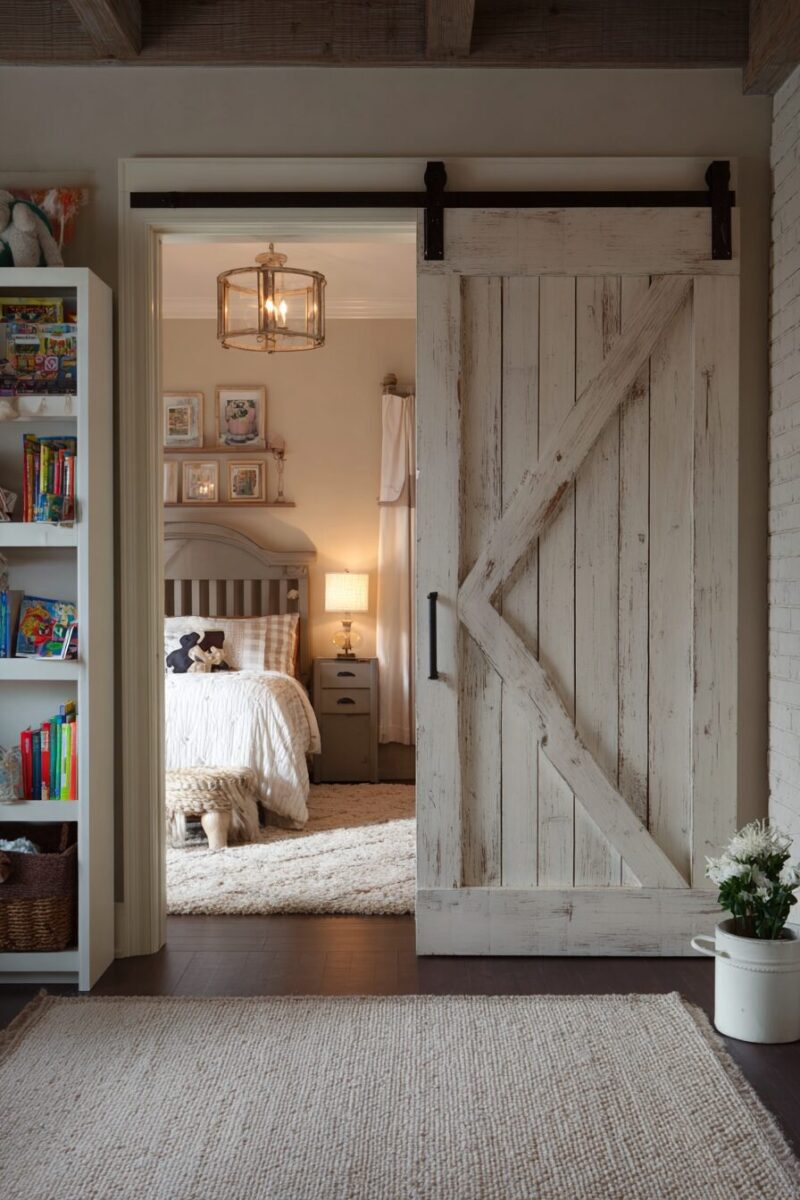 The beauty of sliding barn doors lies in their flexibility – you can slide them open for shared playtime and close them when personalities clash or bedtime routines differ.