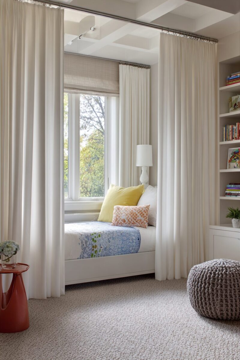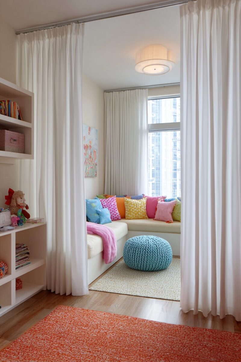 The versatility of curtains means you can easily adjust the room configuration as your children’s needs change – pull them back for shared activities or close them tight for individual quiet time.