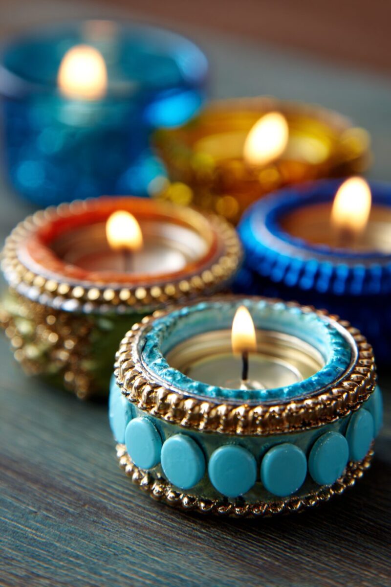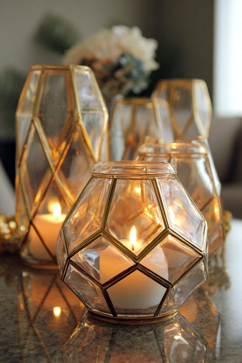The combination of colored glass and candlelight creates a magical glow that can transform any room instantly.