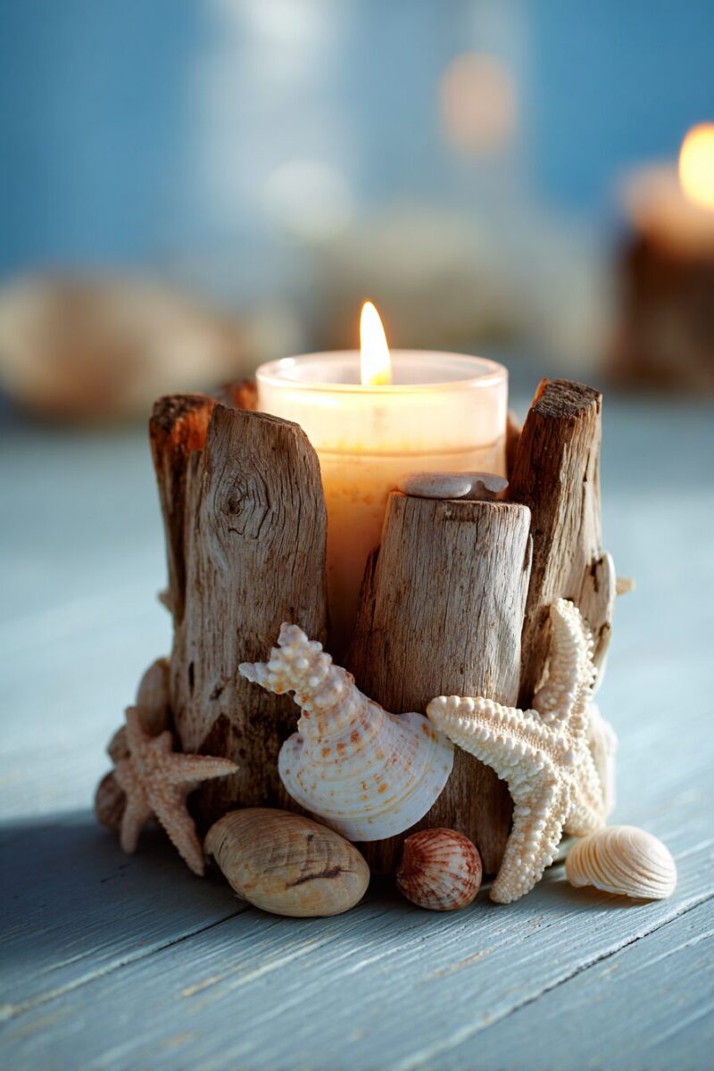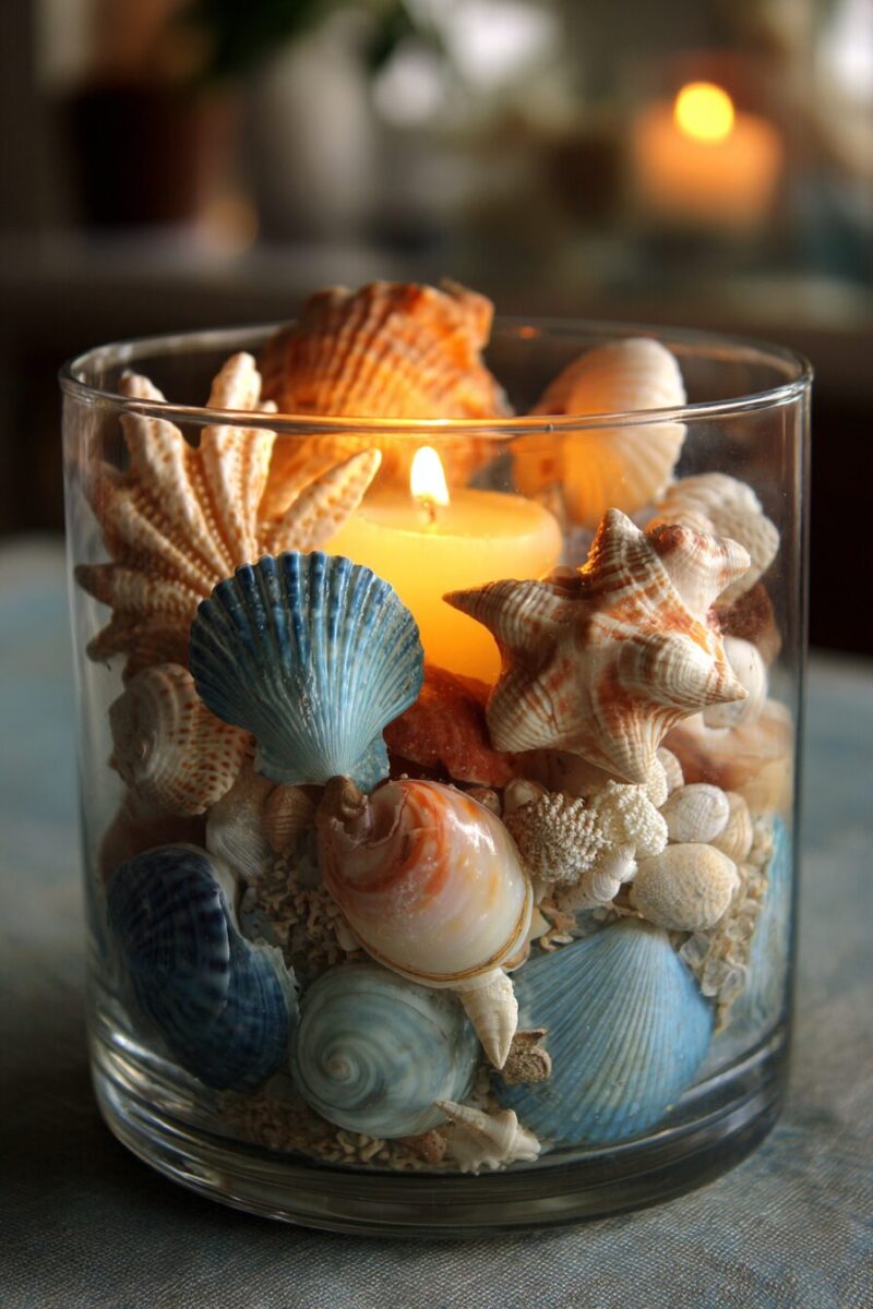Those seashells collected from beach vacations can transform into enchanting candle holders that bring coastal vibes to any space.