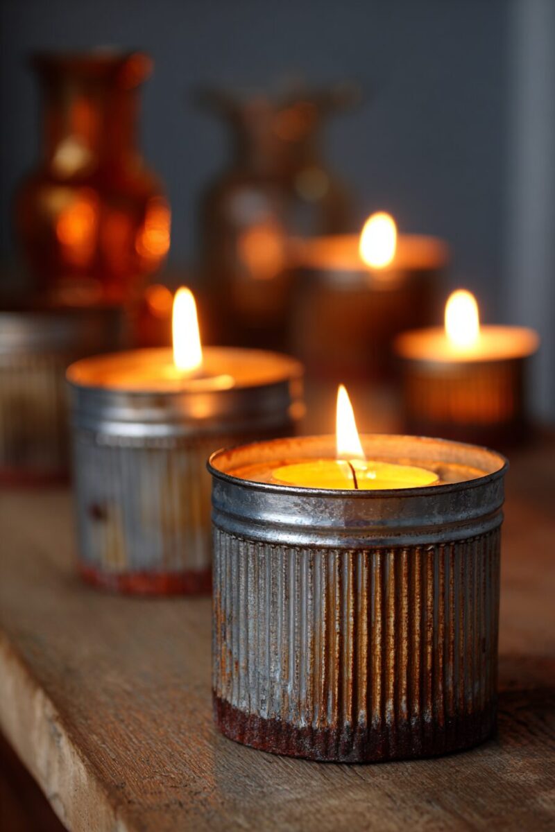 These holders work wonderfully with tea lights or votive candles placed inside, but for safety, always ensure the flame isn’t too close to the top of the can.