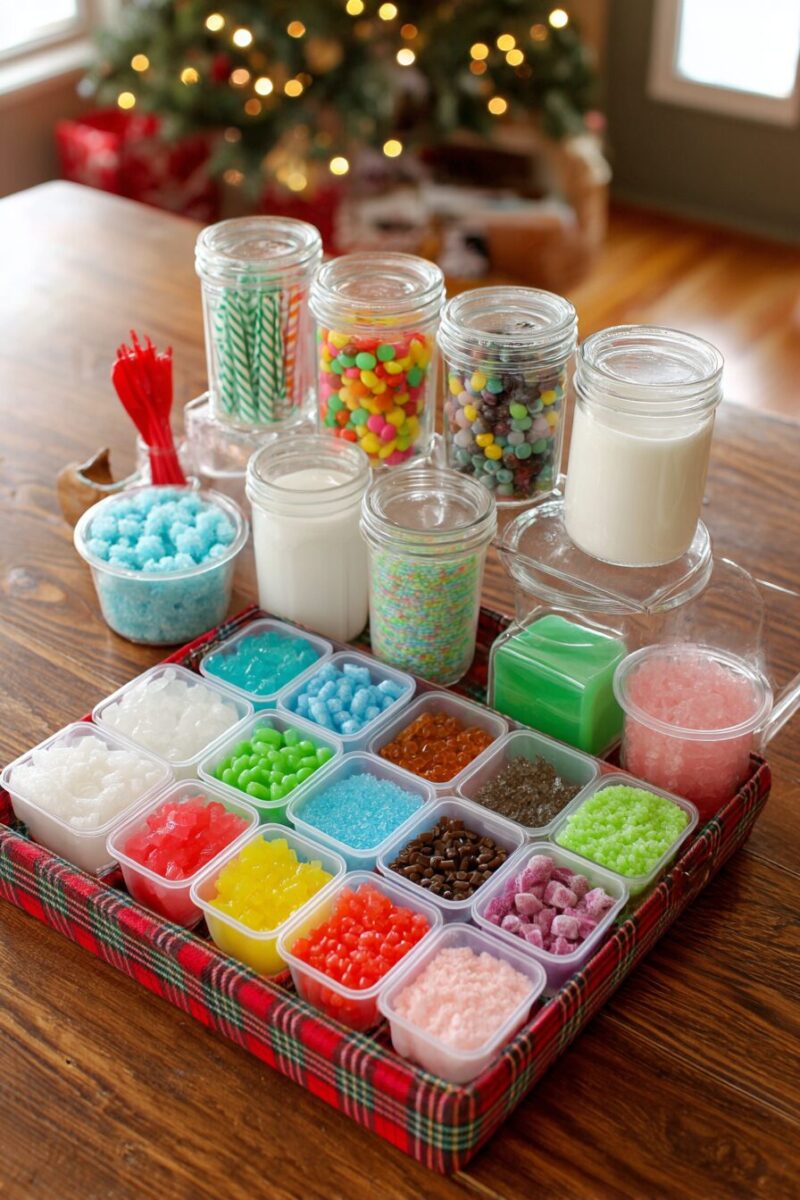 Label each section clearly so your child can find ingredients quickly and clean up easily after their slime-making sessions.