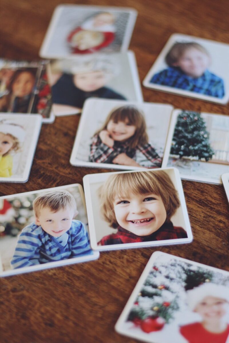 Print two copies of each selected photo, making sure they’re all the same size – about 3×3 inches works perfectly for little hands to handle.