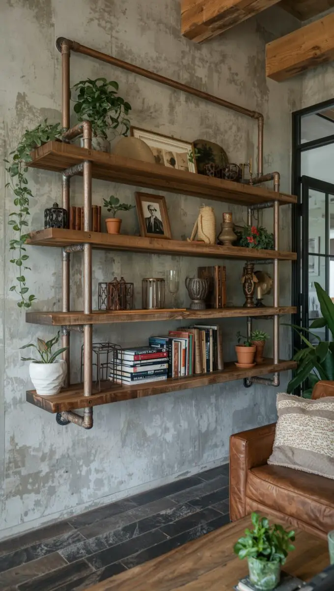 🏡 Start Creating FREE →Pipe and Wood Industrial Shelves