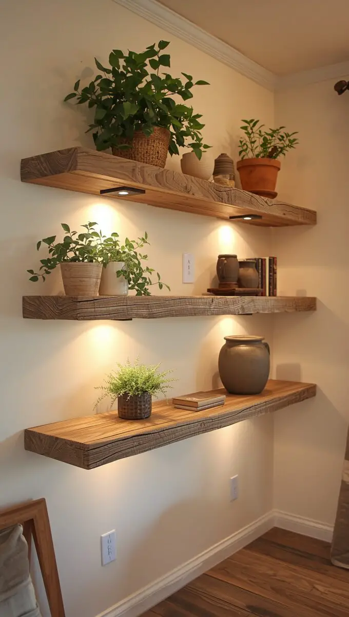 Floating shelves aren’t just storage—they’re little stages for your life’s favorite moments.