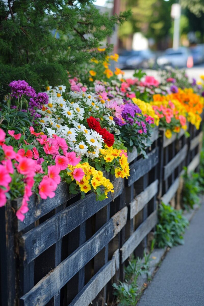 Front yard pallet gardens work particularly well for homes with minimal yard space, allowing you to grow upward instead of outward.