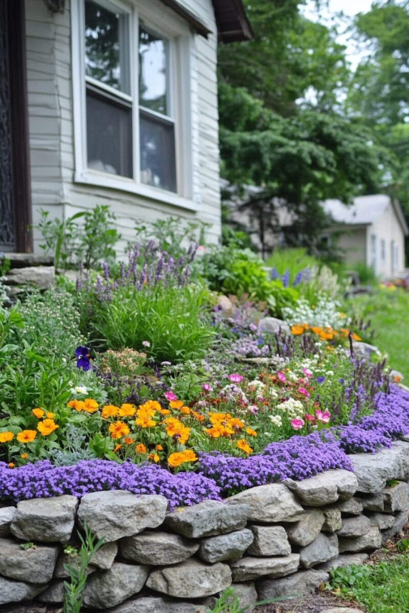 Combining ornamental flowers with useful culinary herbs creates a garden that’s both beautiful and functional – a true conversation starter in your front yard.