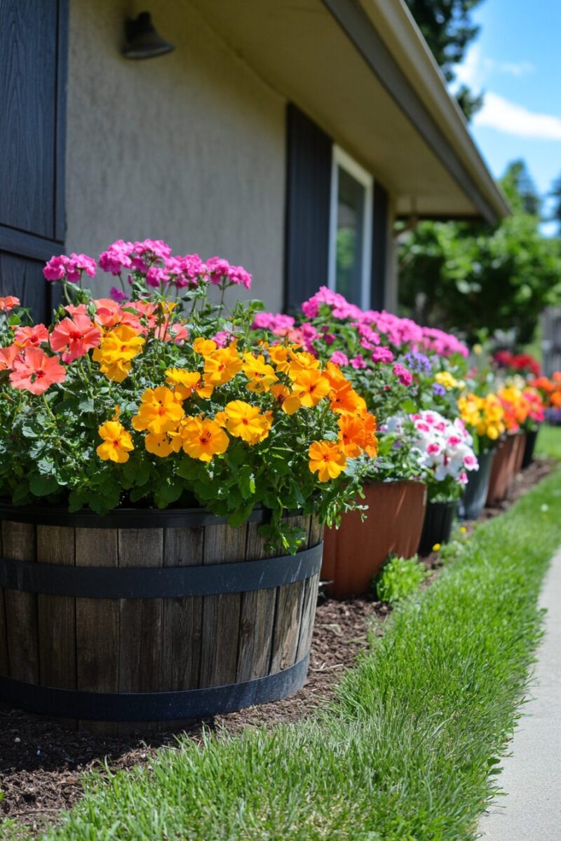 Position your containers thoughtfully to create a natural flow that guides visitors through your front garden space while showcasing each unique planter.