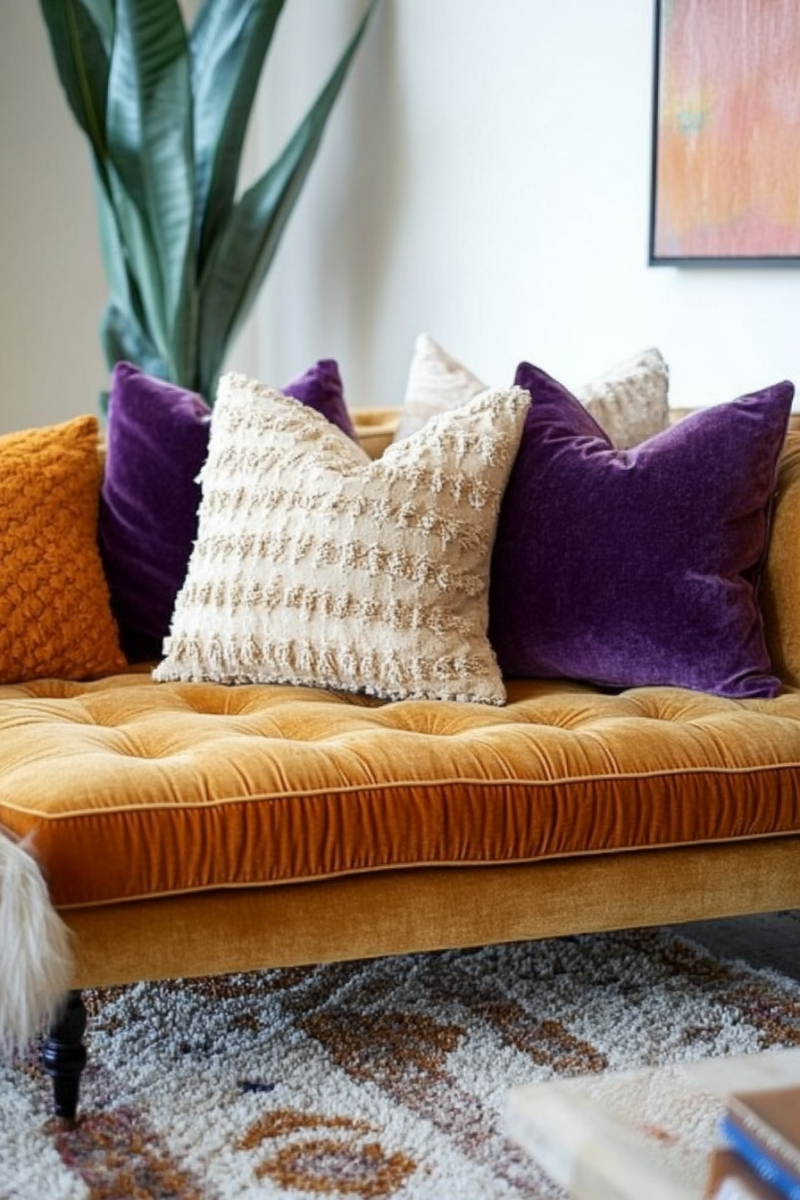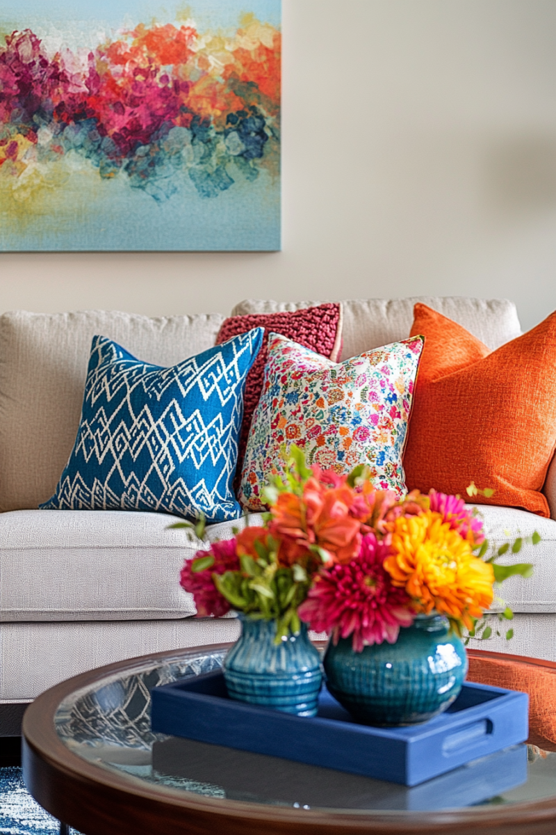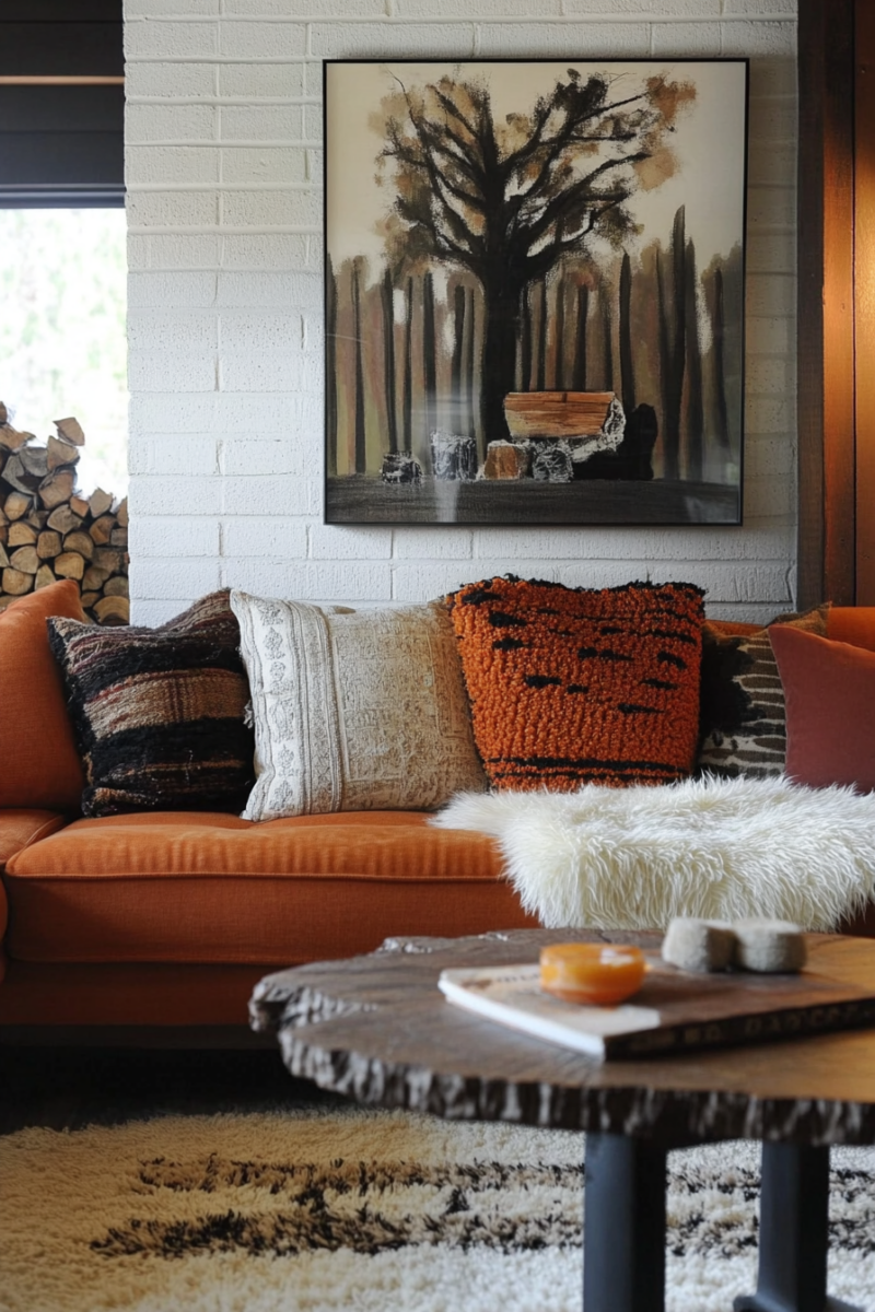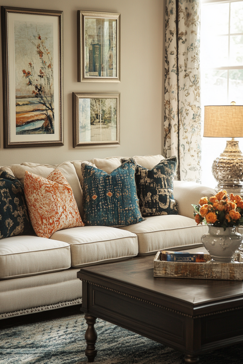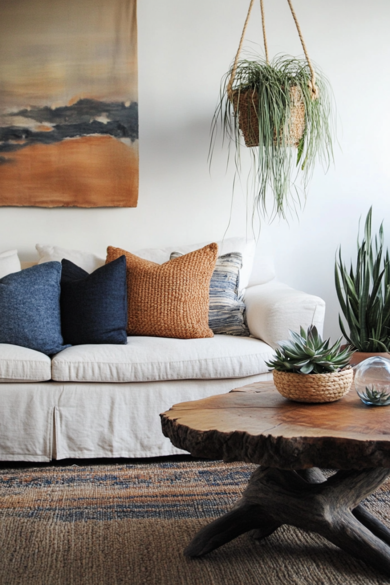 Seasonal textile swaps keep your living room feeling fresh—lighter linens and cottons for spring/summer, richer velvets and wools for fall/winter.
