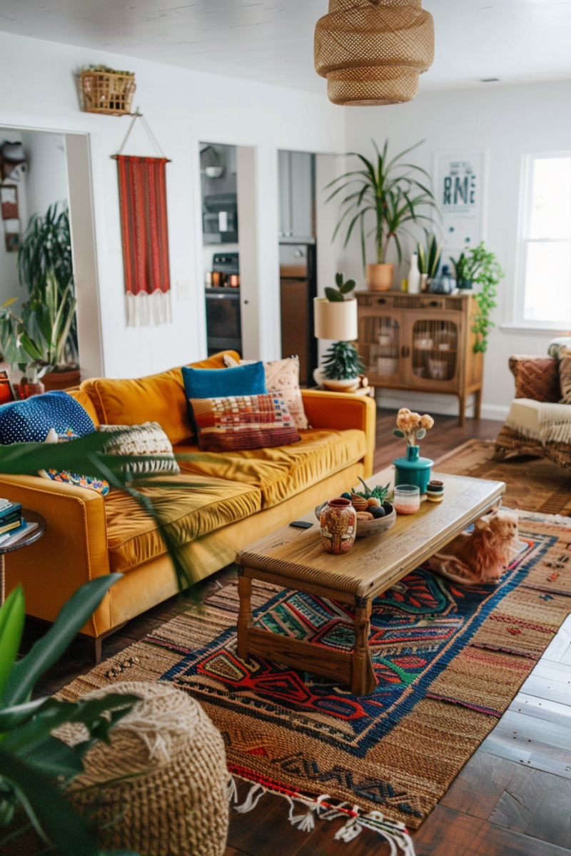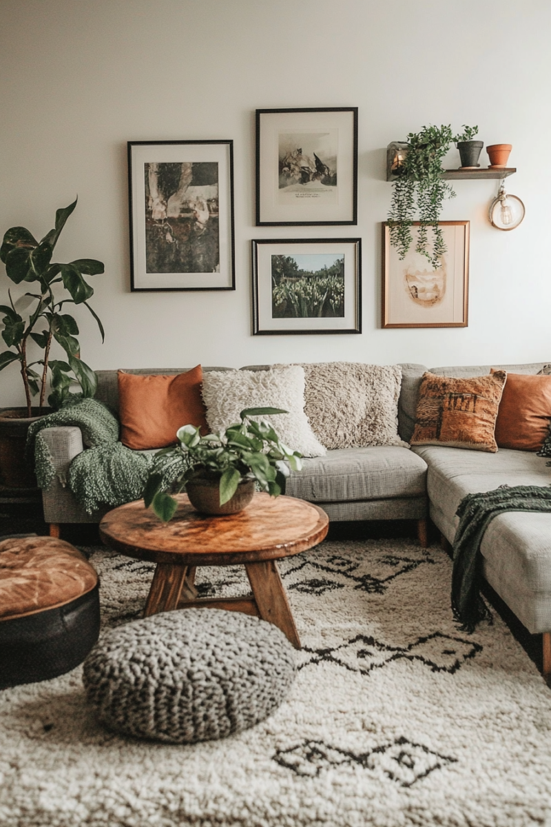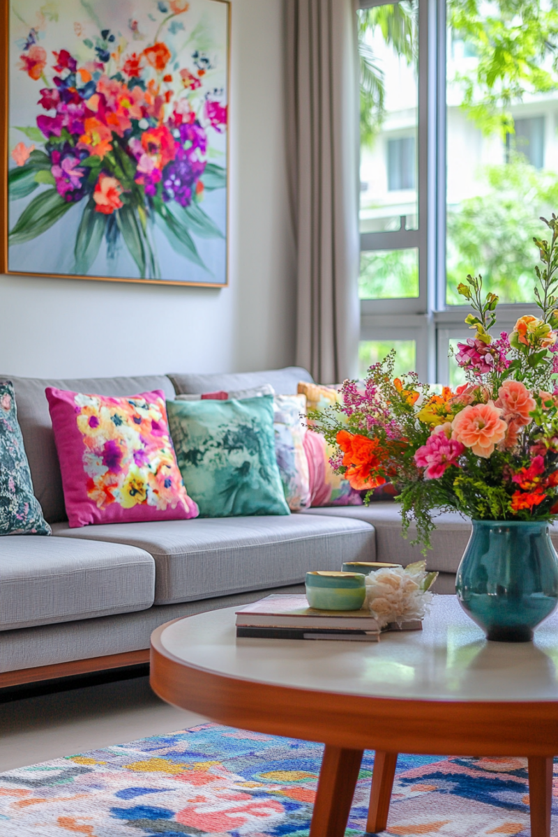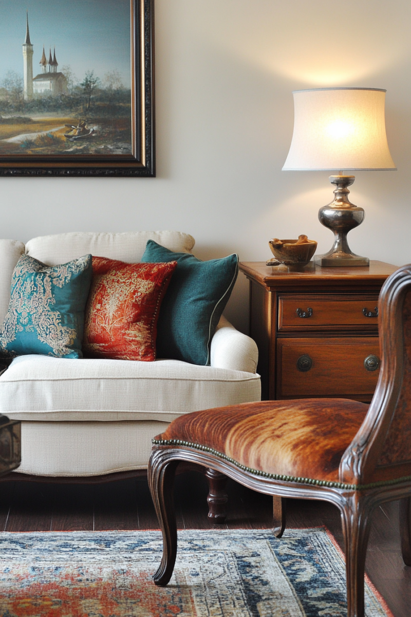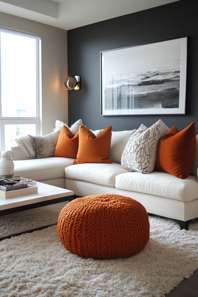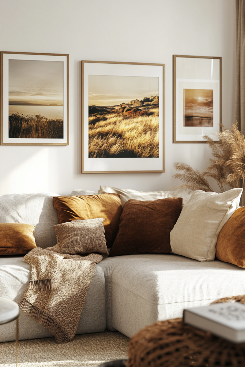 Seasonal textile swaps keep your living room feeling fresh—lighter linens and cottons for spring/summer, richer velvets and wools for fall/winter.