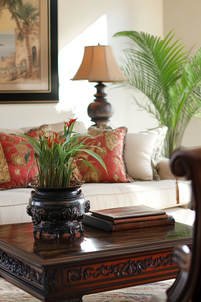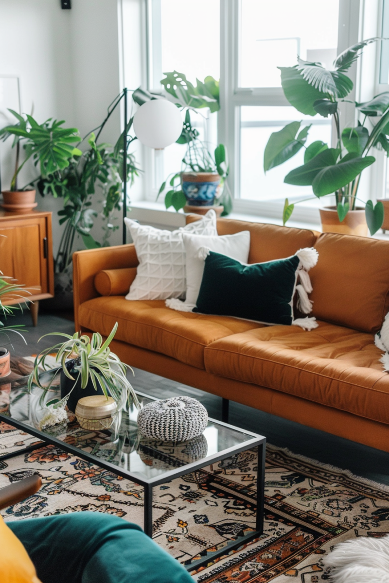 Large-scale houseplants create instant impact—consider a fiddle leaf fig, monstera, or olive tree as a living sculpture in an empty corner.