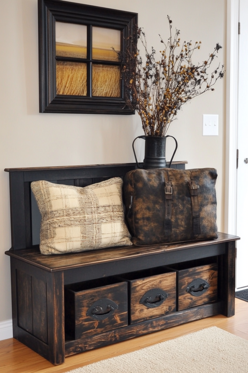 Include seating like a padded bench or pair of chairs so guests can remove shoes comfortably.