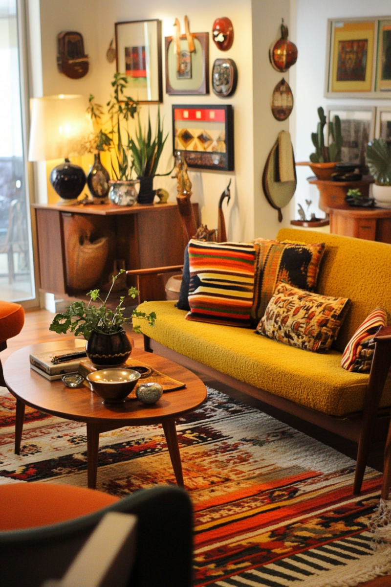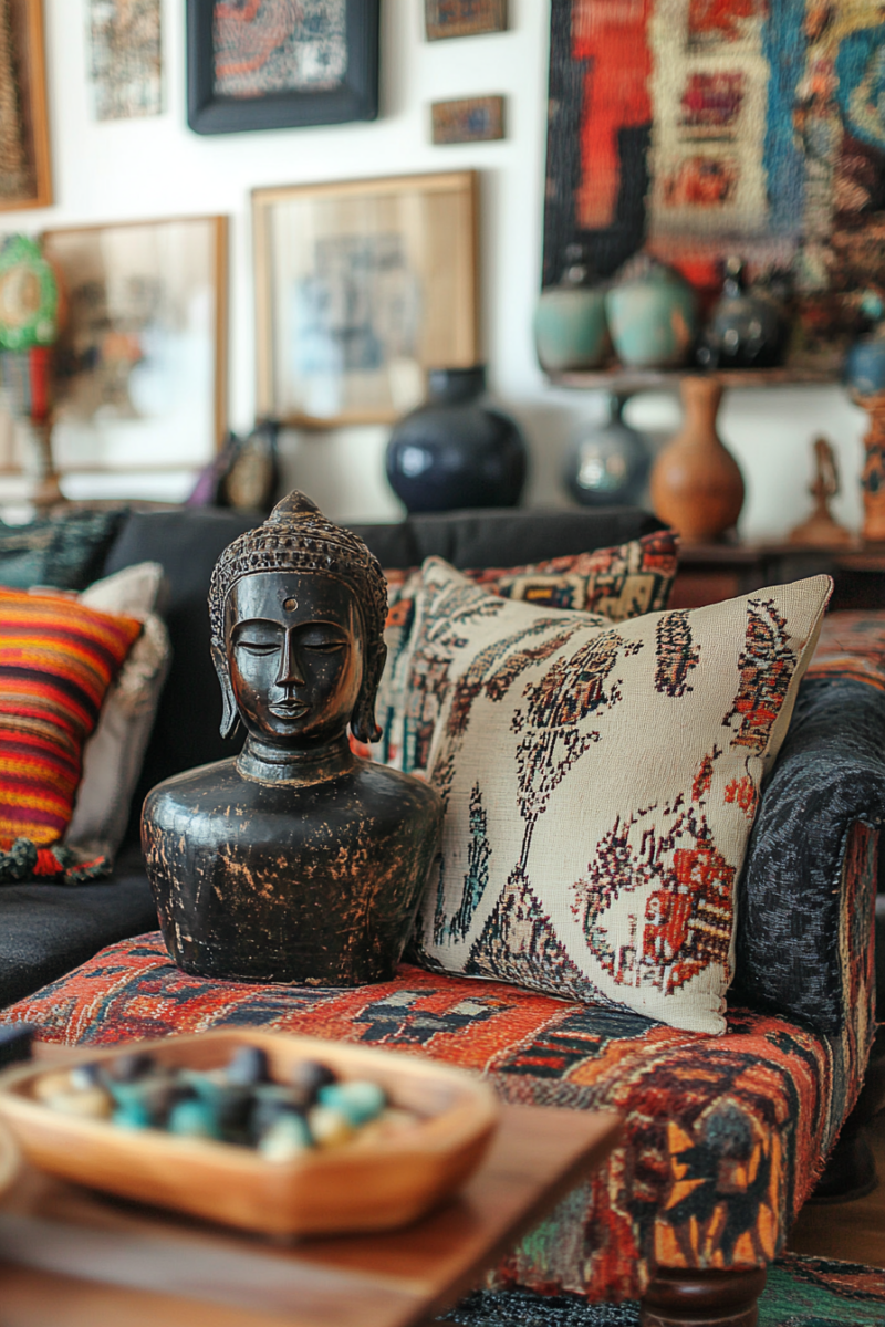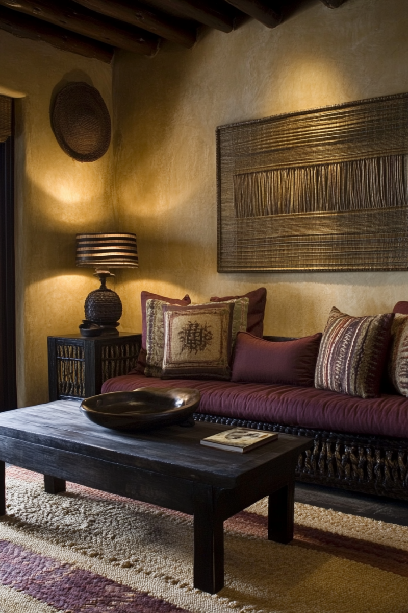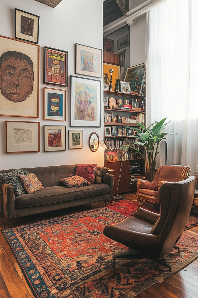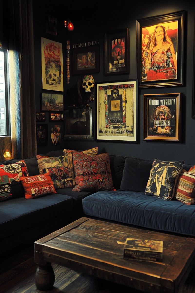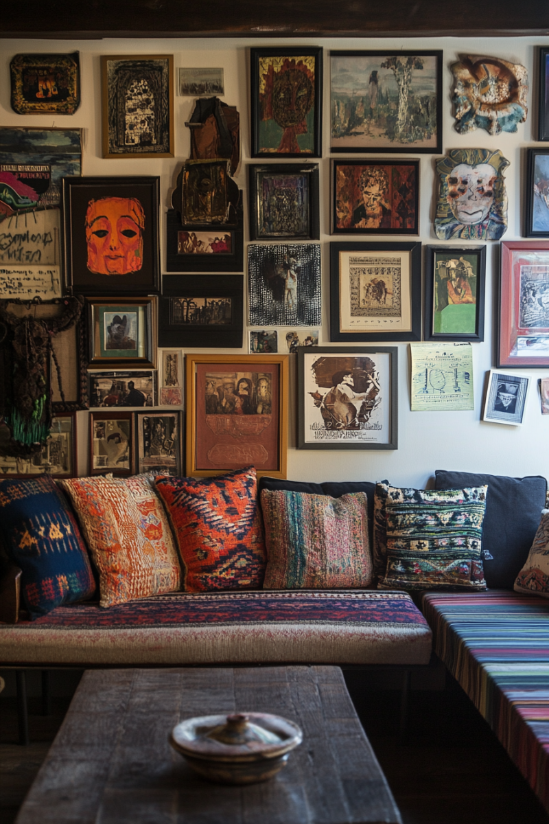 Textile wall hangings add warmth and acoustic benefits—look for modern macramé pieces, vintage rugs, or framed fabric panels that complement your color scheme.