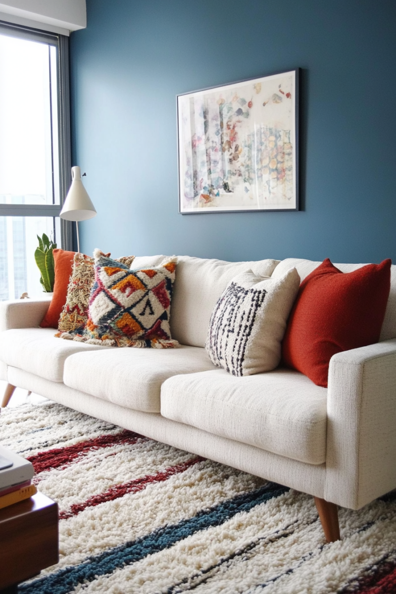 Consider pulling your sofa away from the wall by even 12 inches—this simple change can make your room feel larger and more intentionally designed.