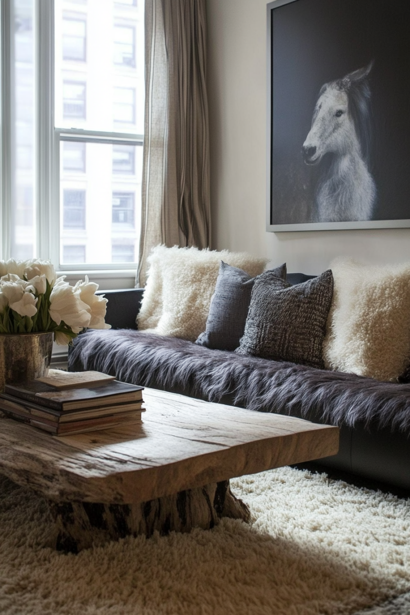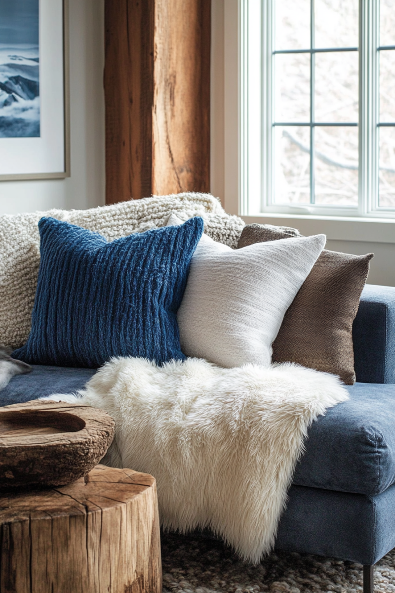 Oversized throw blankets in chunky knits or sustainable materials like hemp and organic cotton add instant warmth and texture to clean-lined furniture.