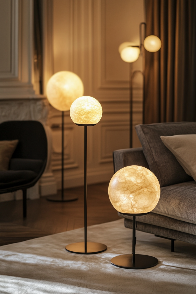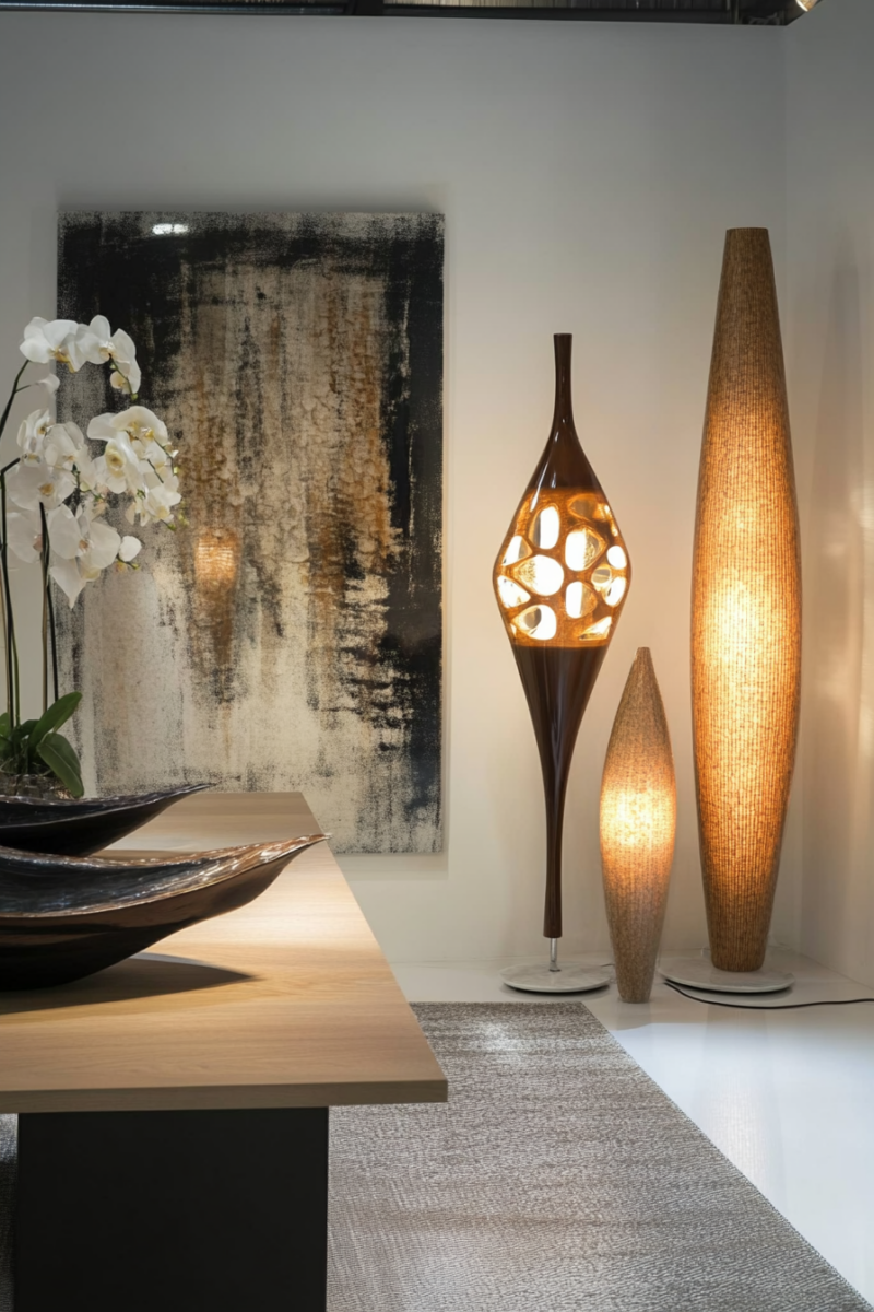 Floor lamps with architectural designs not only provide necessary illumination but also serve as standalone art pieces—look for options with marble bases or interesting geometric shapes.