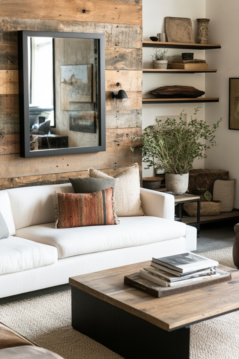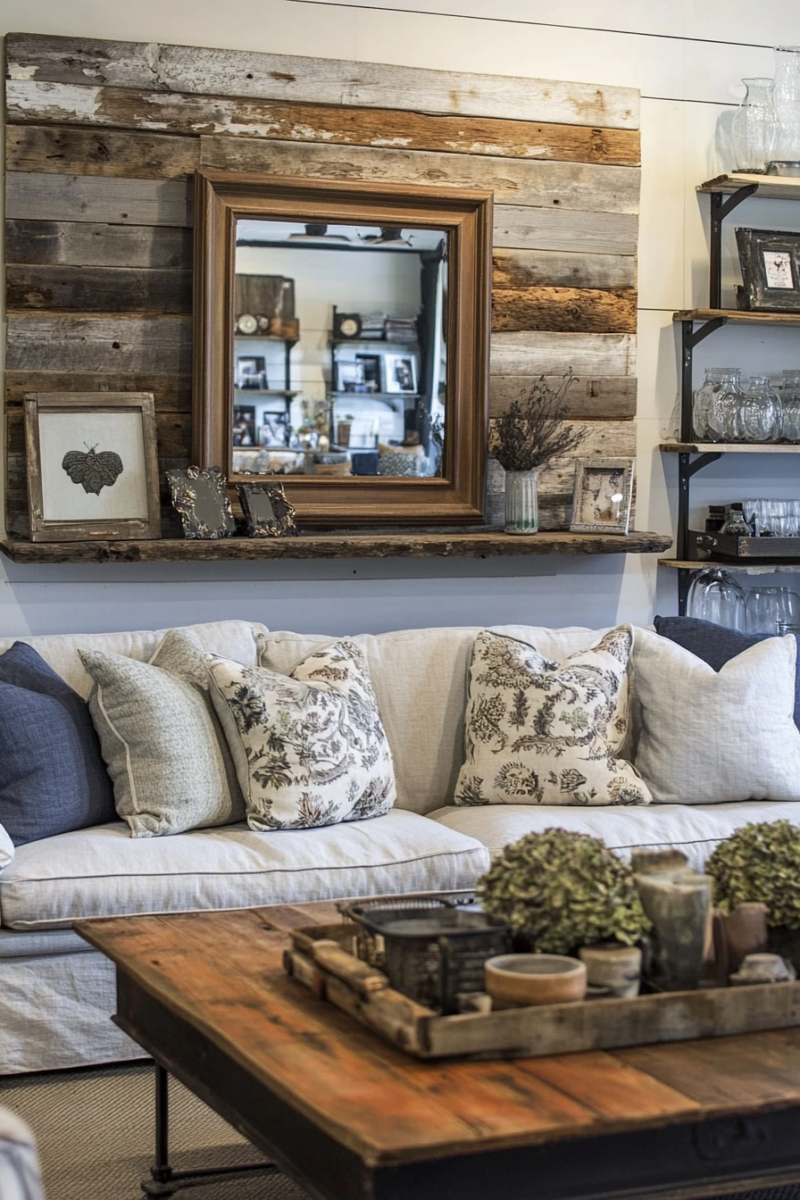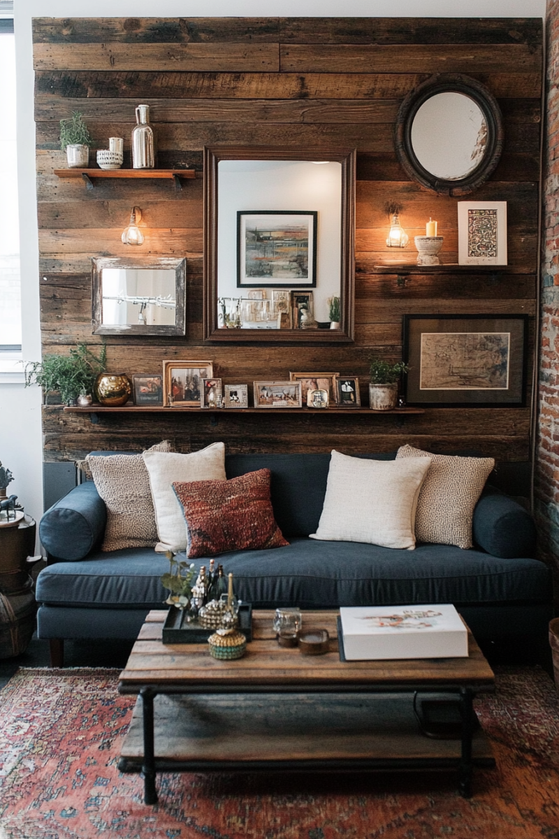 Consider creating an accent wall with architectural salvage pieces like reclaimed wood or vintage tin ceiling tiles for a completely unique focal point.