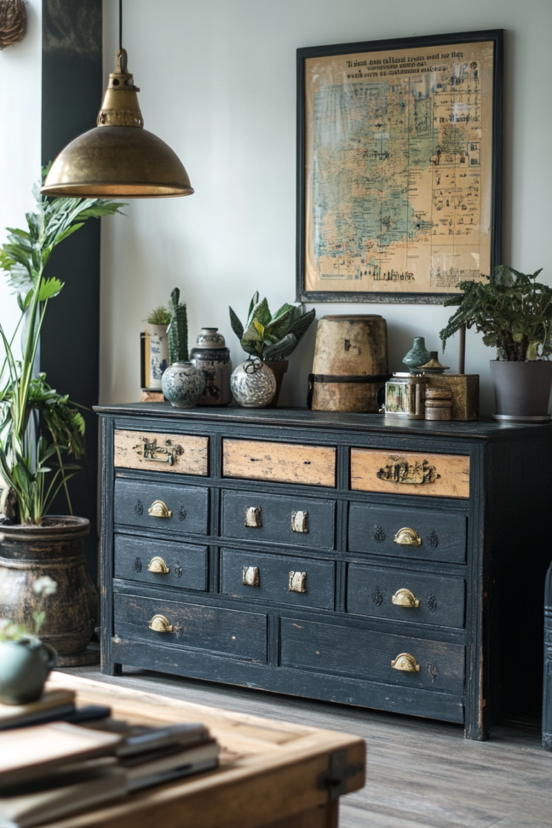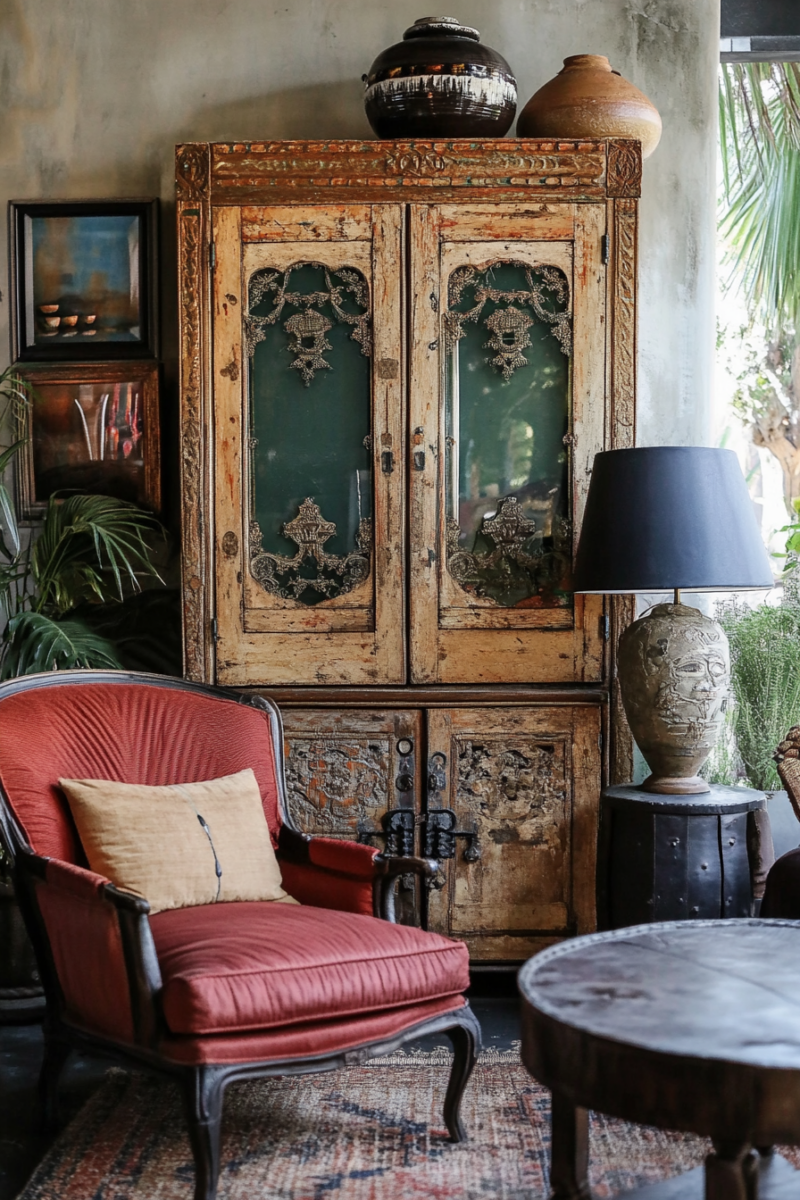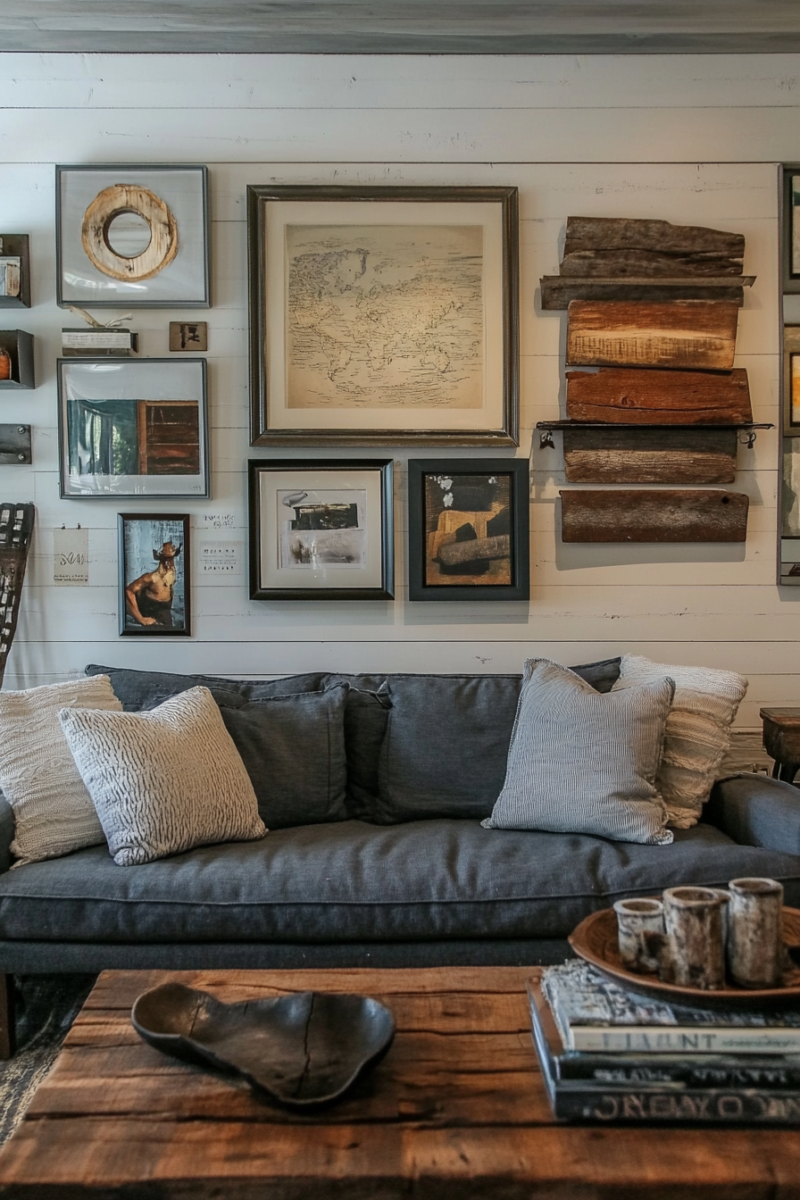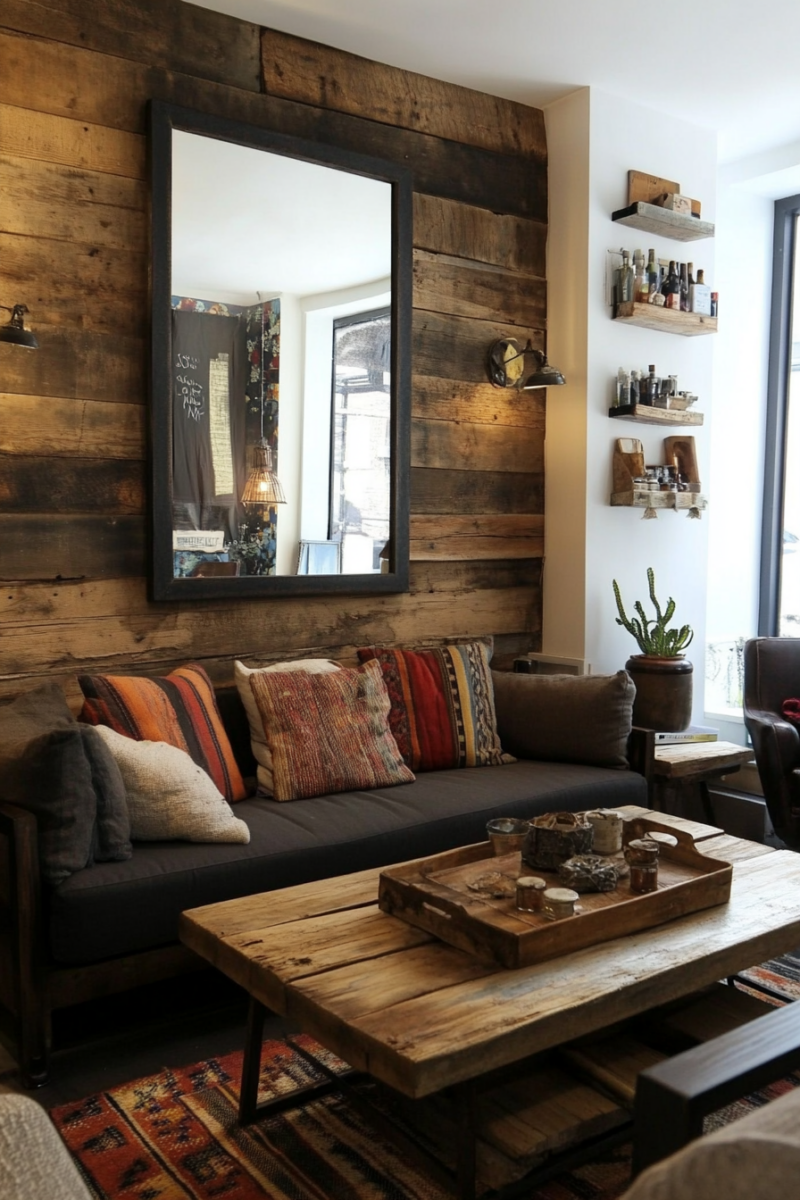 Consider creating an accent wall with architectural salvage pieces like reclaimed wood or vintage tin ceiling tiles for a completely unique focal point.