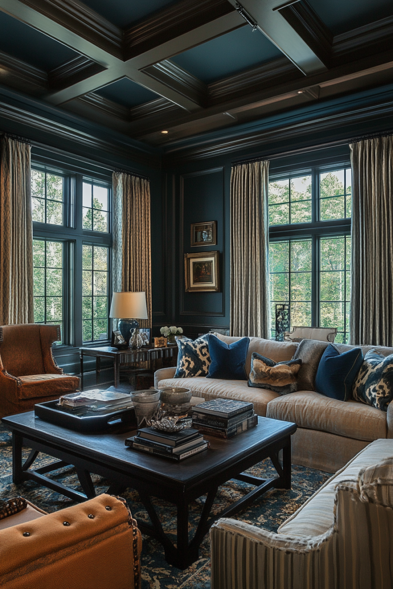 Don’t forget the fifth wall—ceiling treatments from simple paint to more elaborate coffered designs can completely transform how your living room feels.