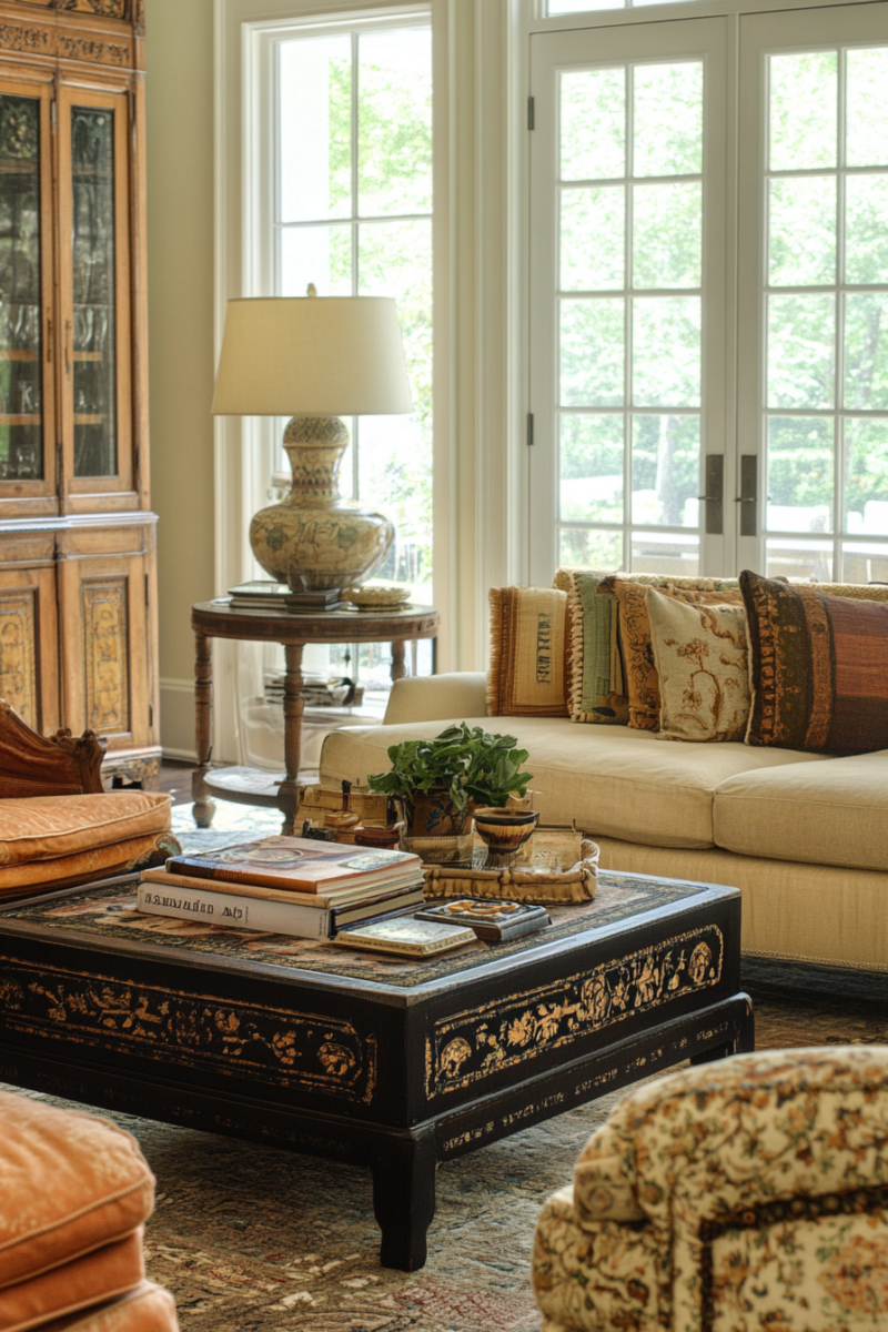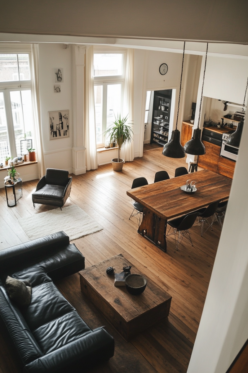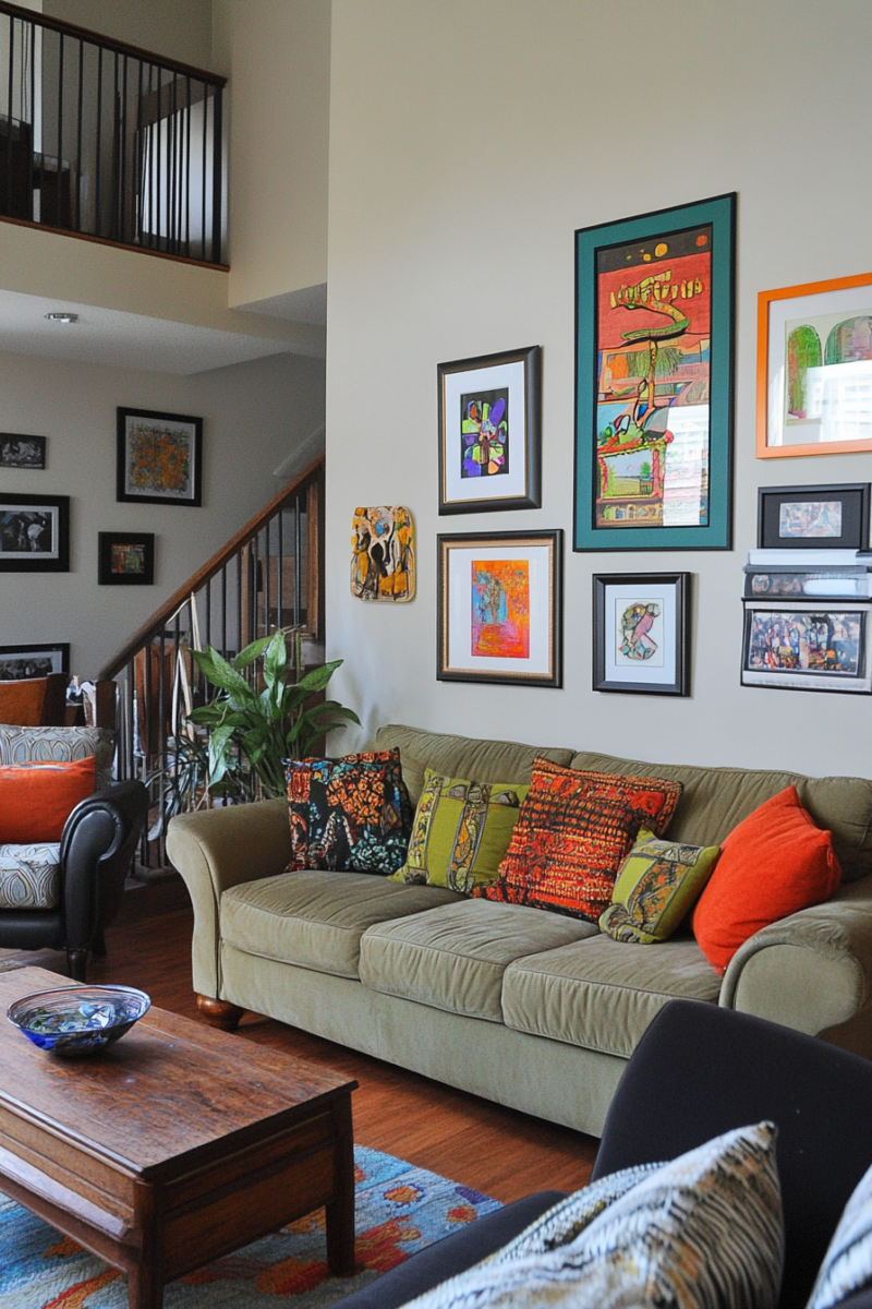 Play with height variations among your furniture pieces to create visual interest—mix low-profile seating with taller elements like bookshelves or floor lamps.