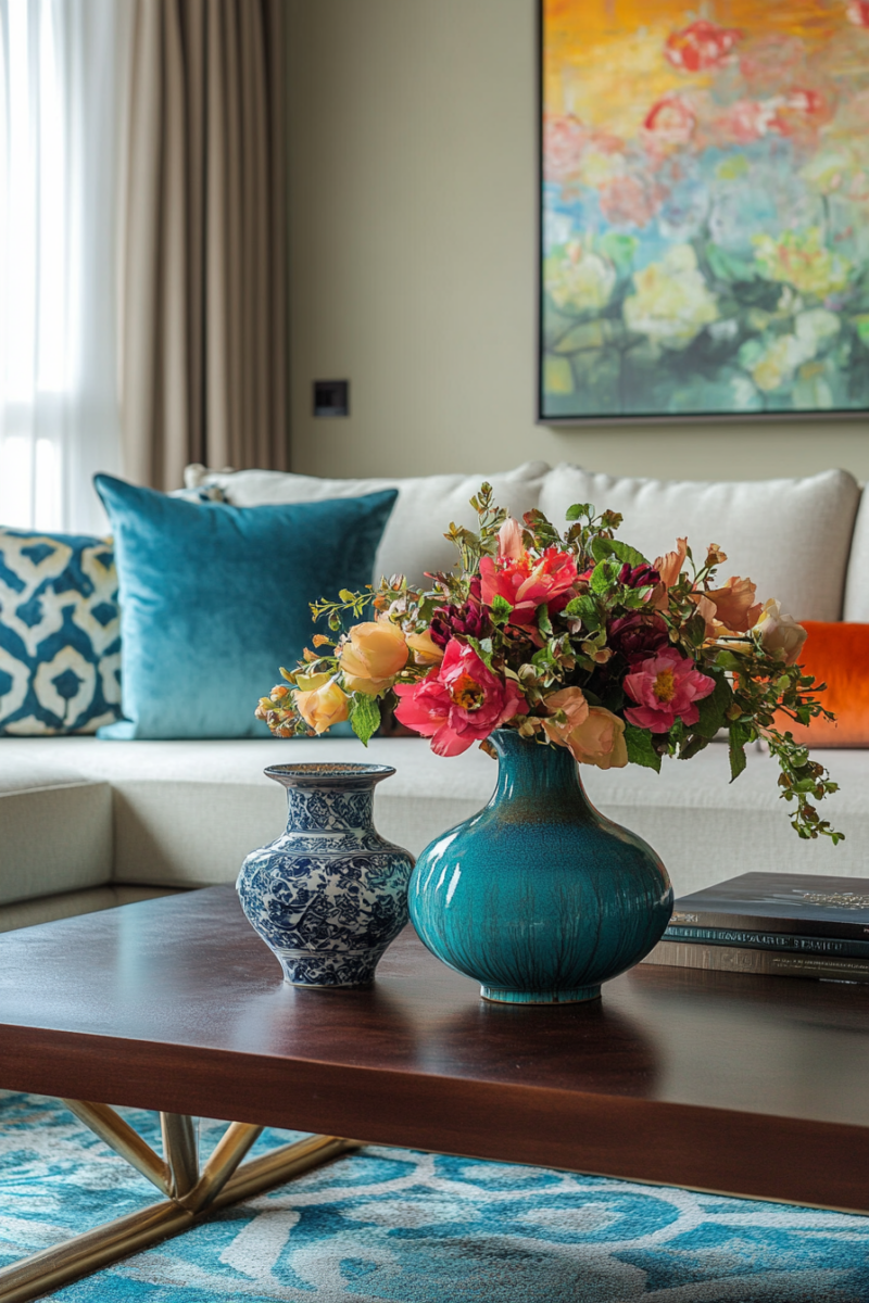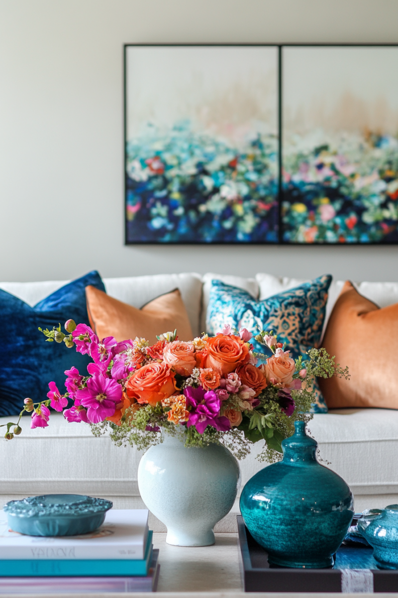 Fresh florals, framed art, or a potted plant energize the space.
