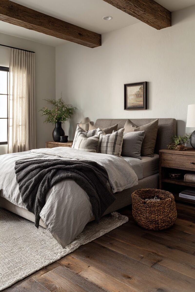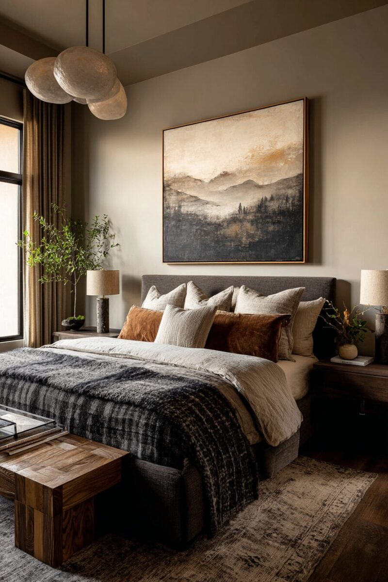 Warm gray serves as the perfect neutral earth tone that creates a sophisticated backdrop while maintaining the cozy, grounded feeling that makes earth tone bedrooms so appealing.