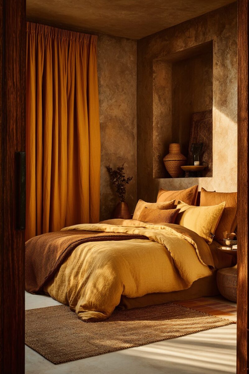 This earth tone bedroom idea works particularly well in colder climates or north-facing rooms where you want to create a sense of warmth and coziness year-round.