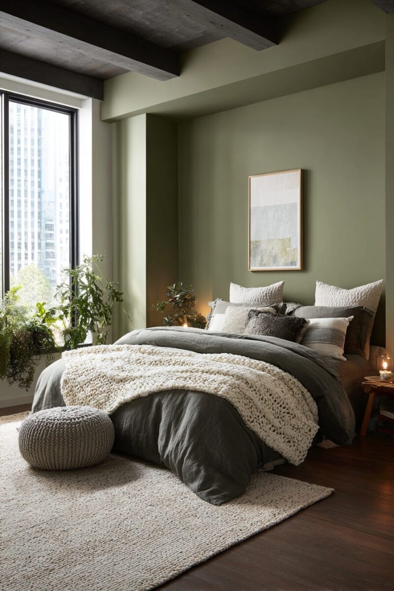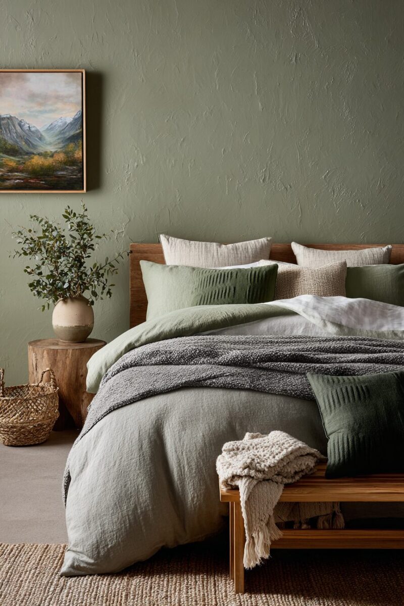 Sage green brings the calming essence of nature indoors, creating a bedroom atmosphere that feels like waking up in a peaceful forest clearing.