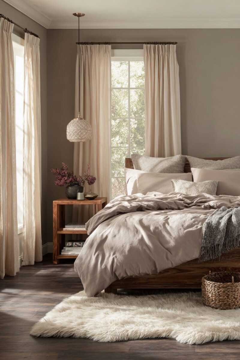 This versatile color has the unique ability to appear different throughout the day – sometimes more brown, sometimes more gray – giving your bedroom a dynamic quality that keeps it interesting.