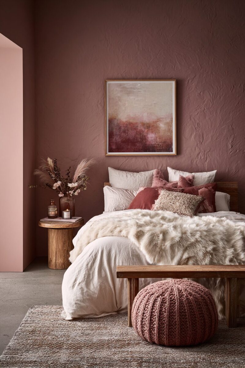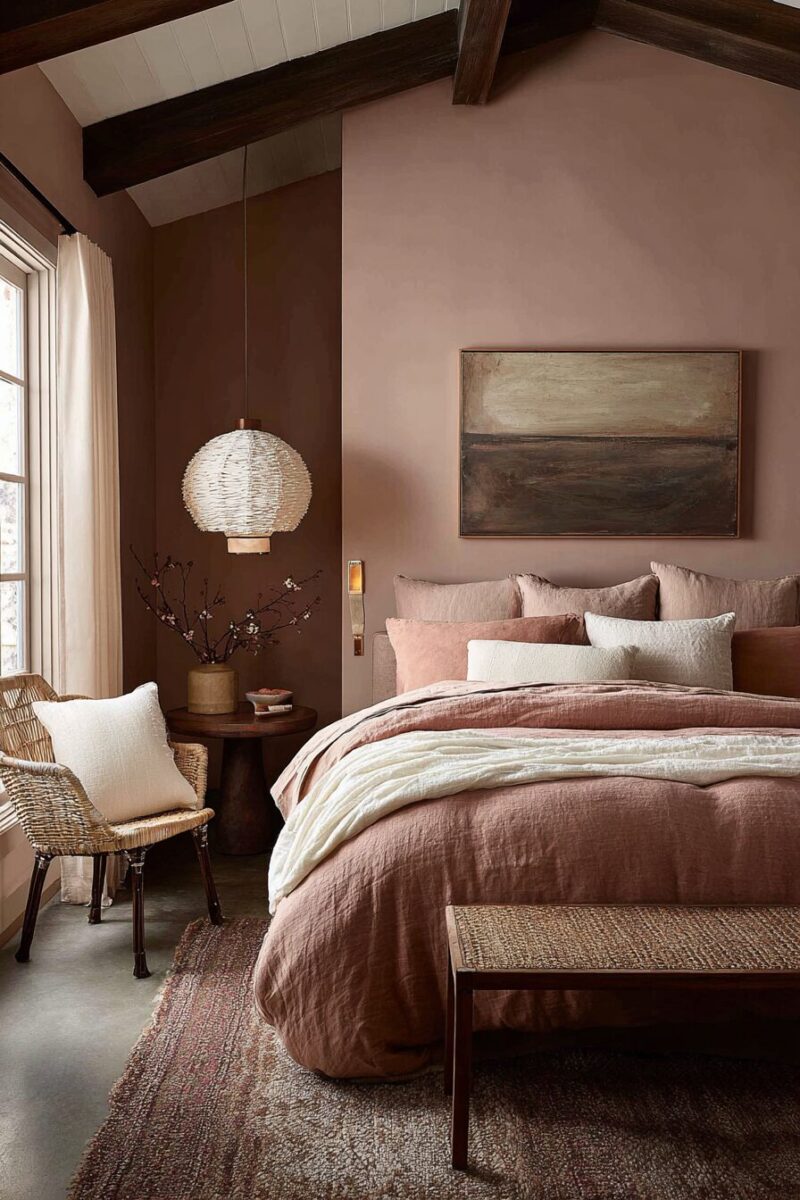 Dusty rose brings a soft, romantic warmth to your bedroom while maintaining the earthy, grounded feeling that makes earth tone spaces so appealing and restful.