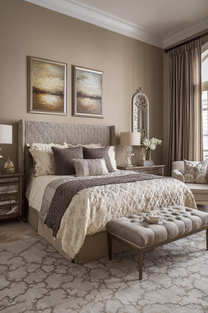 The psychological effect of taupe is incredibly calming and grounding, creating a bedroom environment that feels like a luxury hotel suite where you can truly rest and recharge.