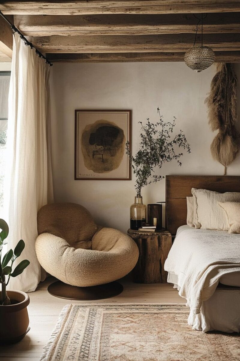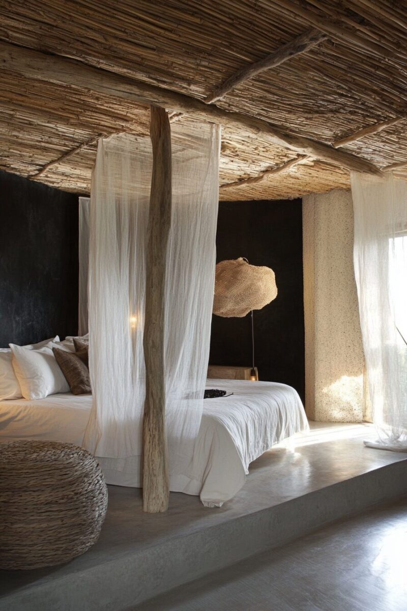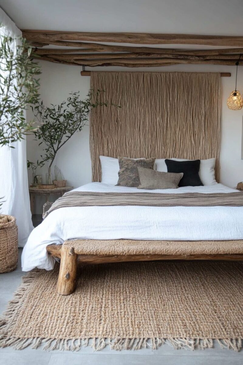 The most authentic earthy boho bedrooms feature materials that come directly from nature, minimally processed and rich with character.