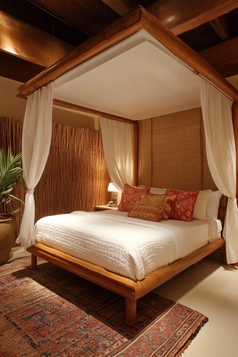 Play with asymmetry – rather than a perfectly centered canopy, consider draping fabric from one corner across the ceiling for an unexpected, dreamy effect.