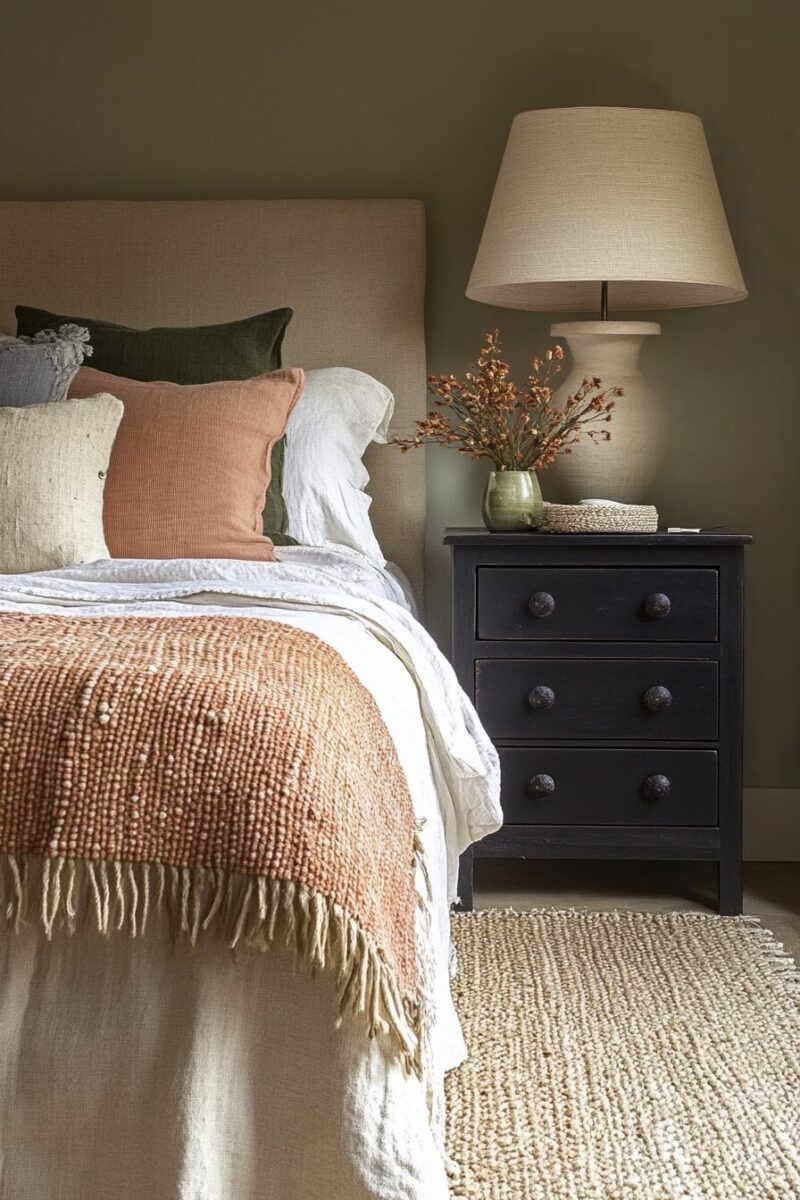 Textiles are your best friends here – look for naturally dyed fabrics in rich earth tones that bring both color and texture to your space.