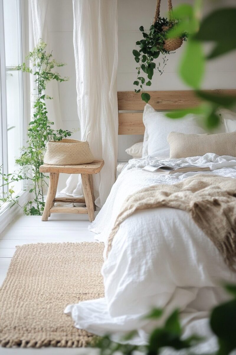 Start with quality basics – invest in the best natural fiber sheets you can afford, ideally linen or organic cotton in earth tones or subtle patterns.