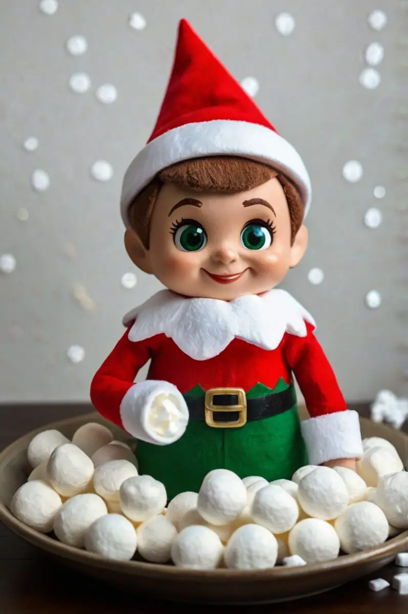 Place a few marshmallows in a small bowl next to your elf, making it look like they’re stocking up for another round of winter warfare.