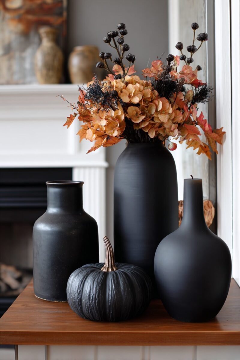 Look for ceramic pumpkins or glass jars in black tones.