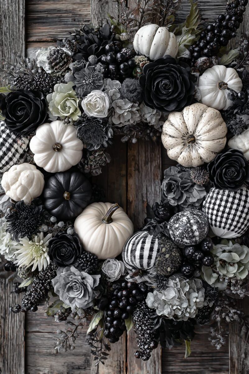 A black-and-white fall wreath instantly catches the eye and adds style to your front door or entryway.