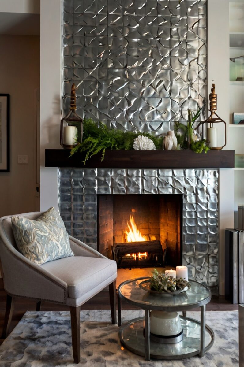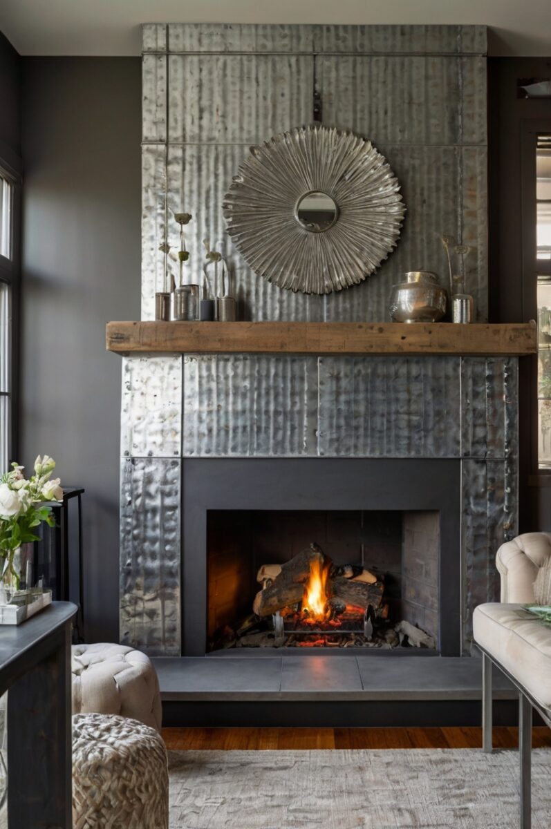 The subtle silvery-gray patina of aged galvanized metal creates a beautiful contrast against the warmth of wooden mantels or the texture of stone surrounds.