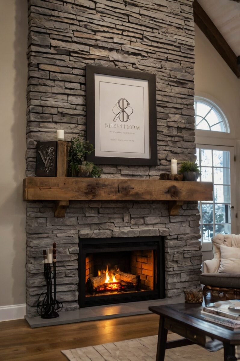 You might also consider adding small, discrete lighting above or below the mantel to highlight its natural beauty, especially in the evening hours.