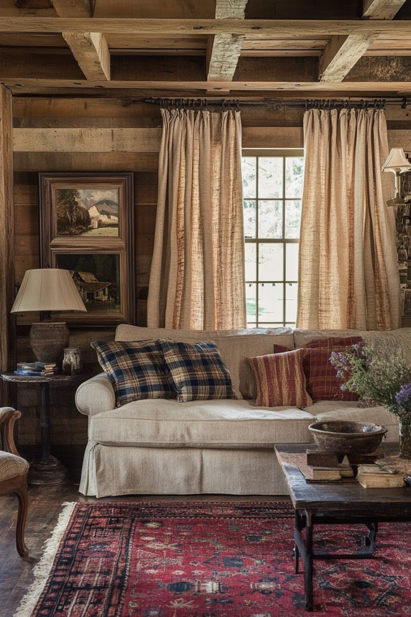 You can pair sheer curtains with wooden or iron curtain rods to maintain that rustic vibe.