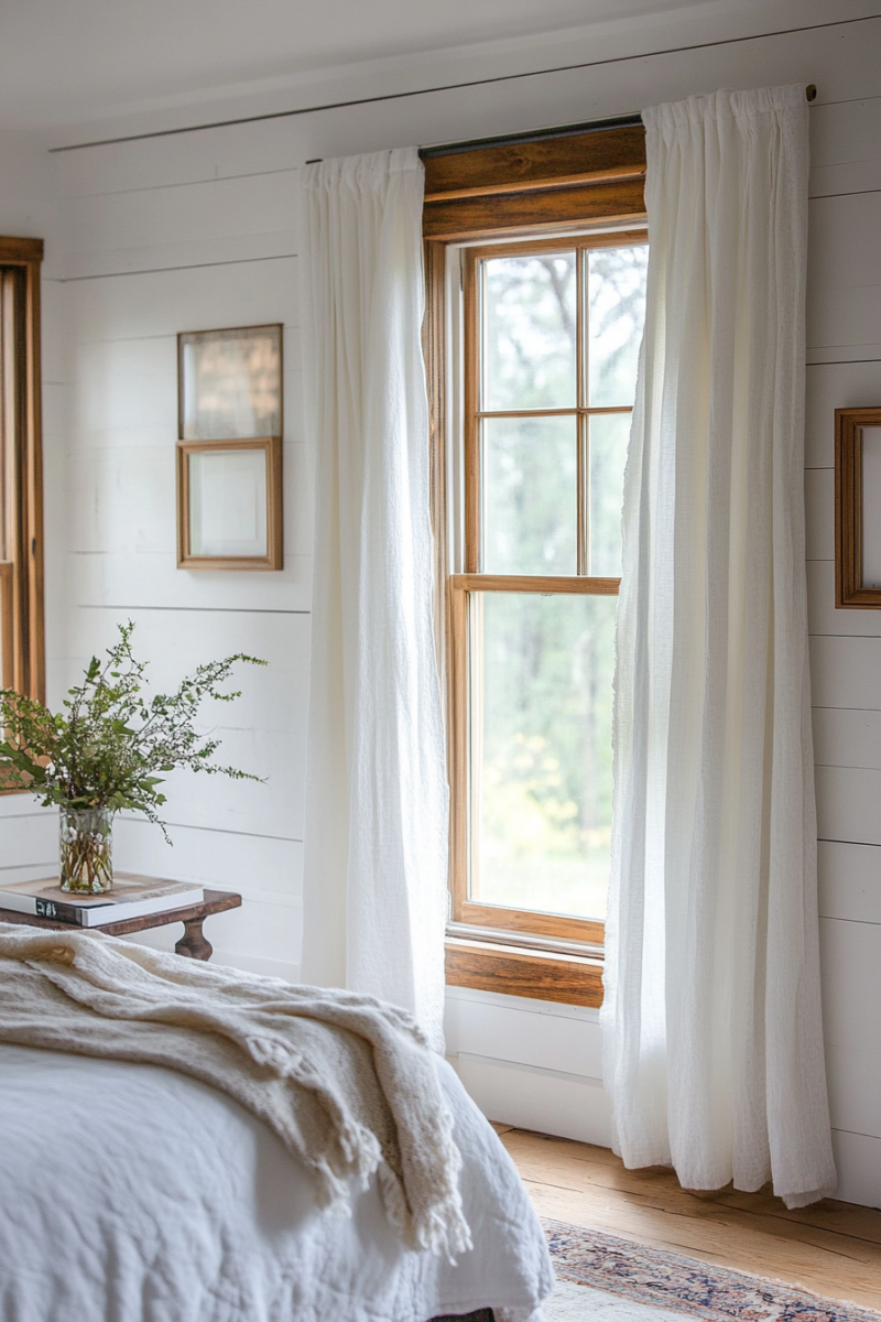 Sheer curtains are a beautiful way to bring a touch of romance to your farmhouse decor.