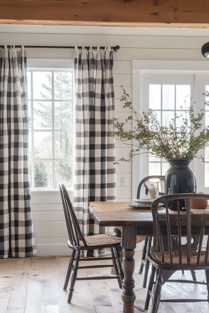Buffalo check curtains work well in kitchens, dining rooms, or even bedrooms.