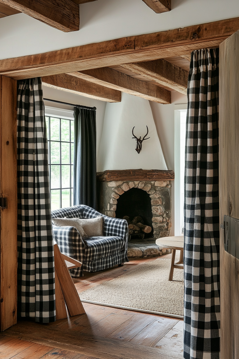 Buffalo check curtains also pair beautifully with wooden or wrought iron curtain rods.