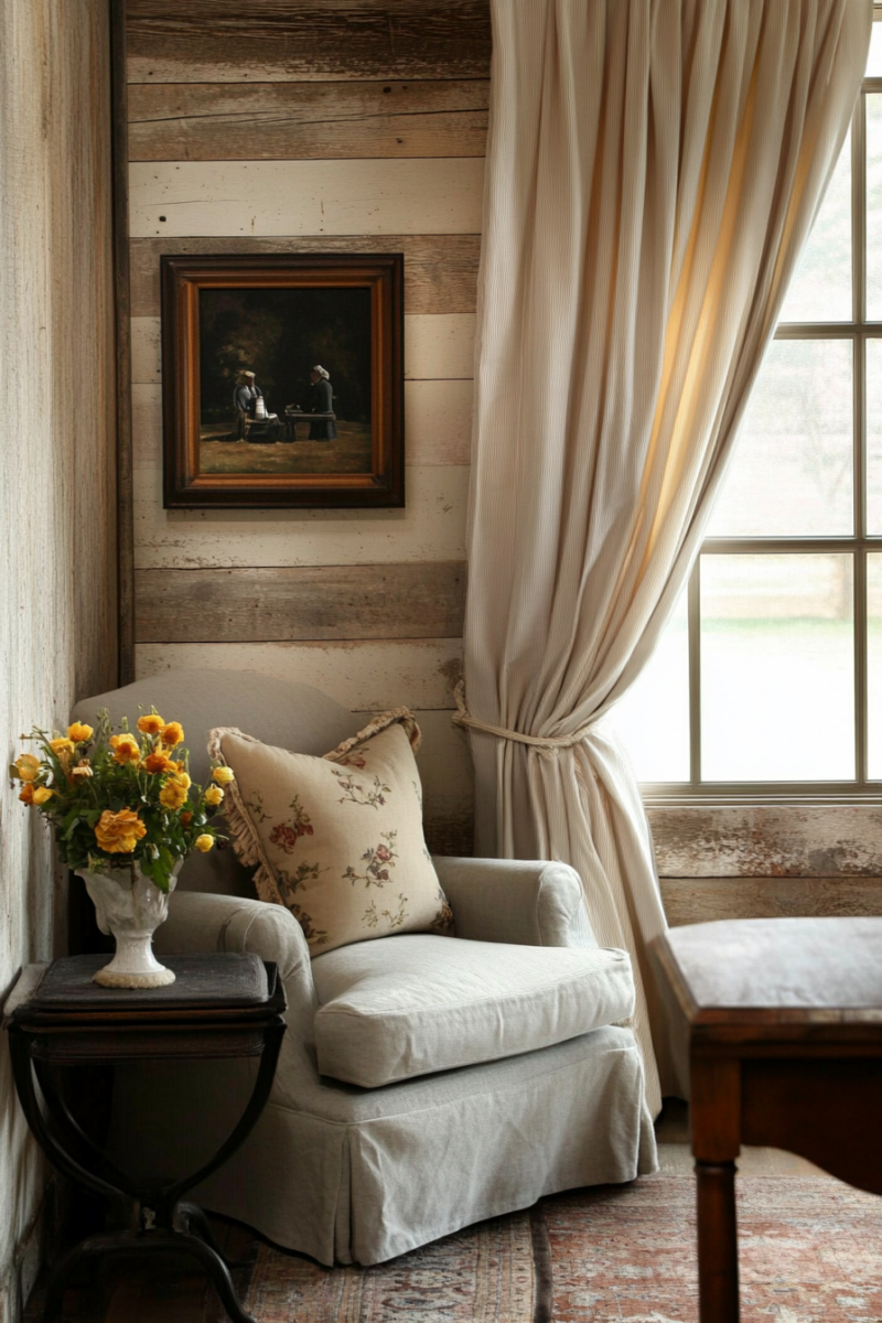 This combination creates a cozy, inviting atmosphere that’s perfect for a farmhouse.