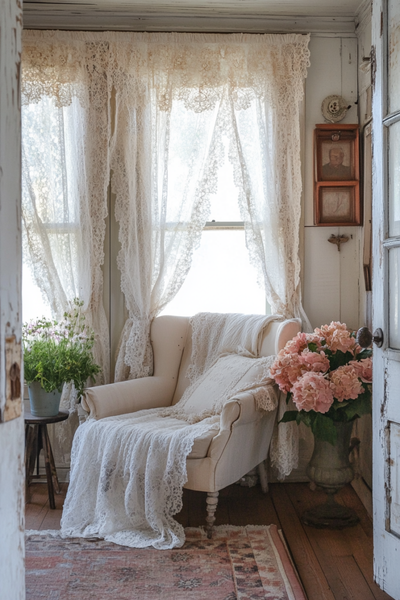 Lace curtains are perfect if you’re looking to add a touch of vintage elegance to your farmhouse decor.