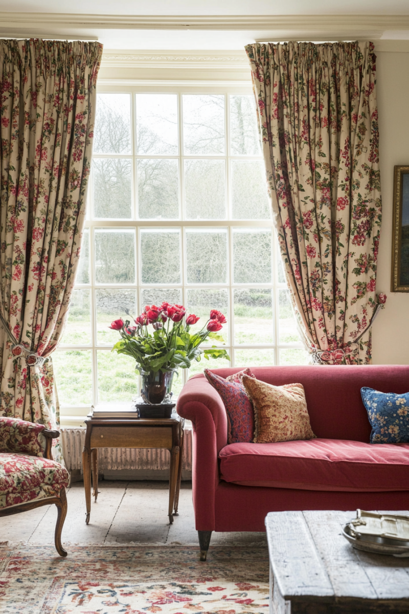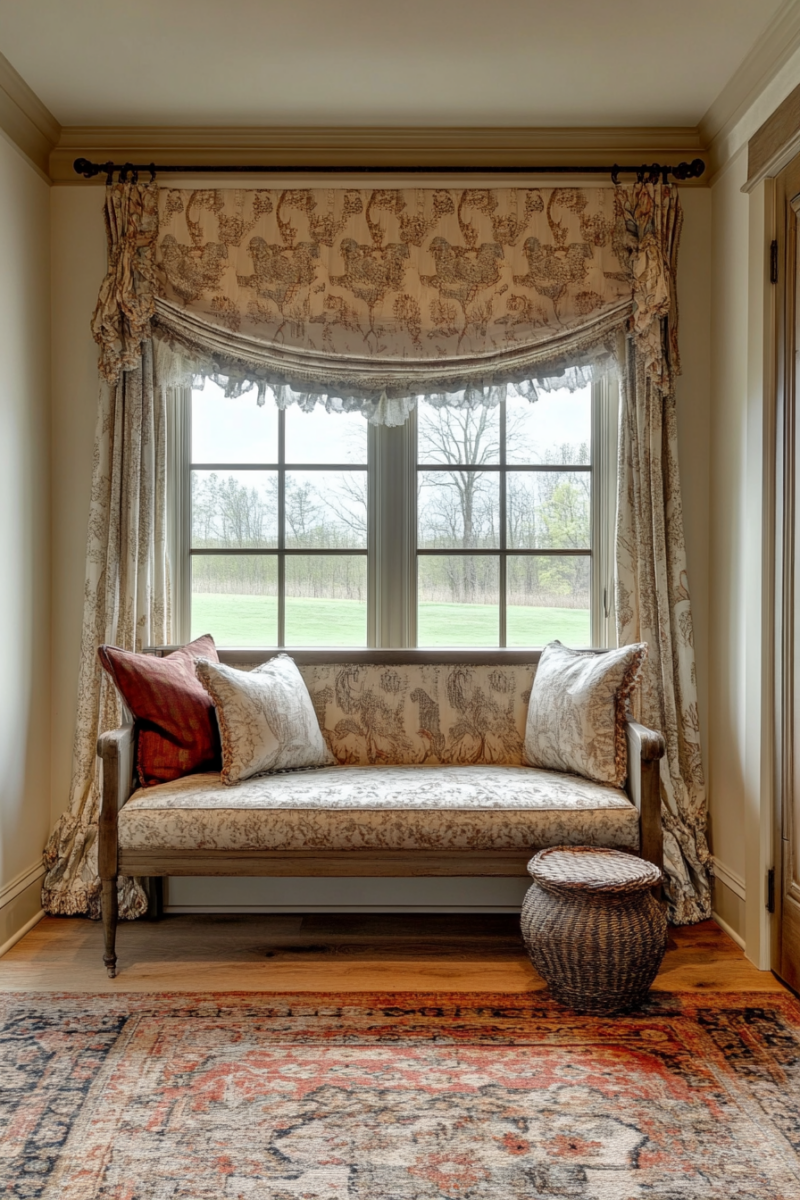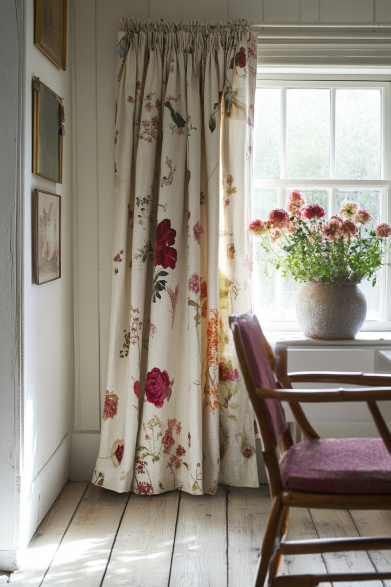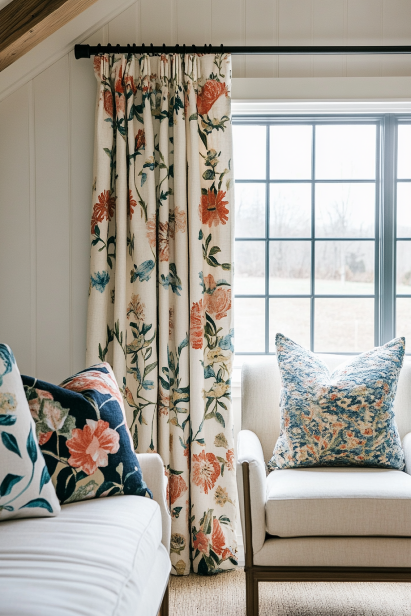 When choosing printed curtains, stick to muted or earthy tones to maintain the rustic charm of your farmhouse.