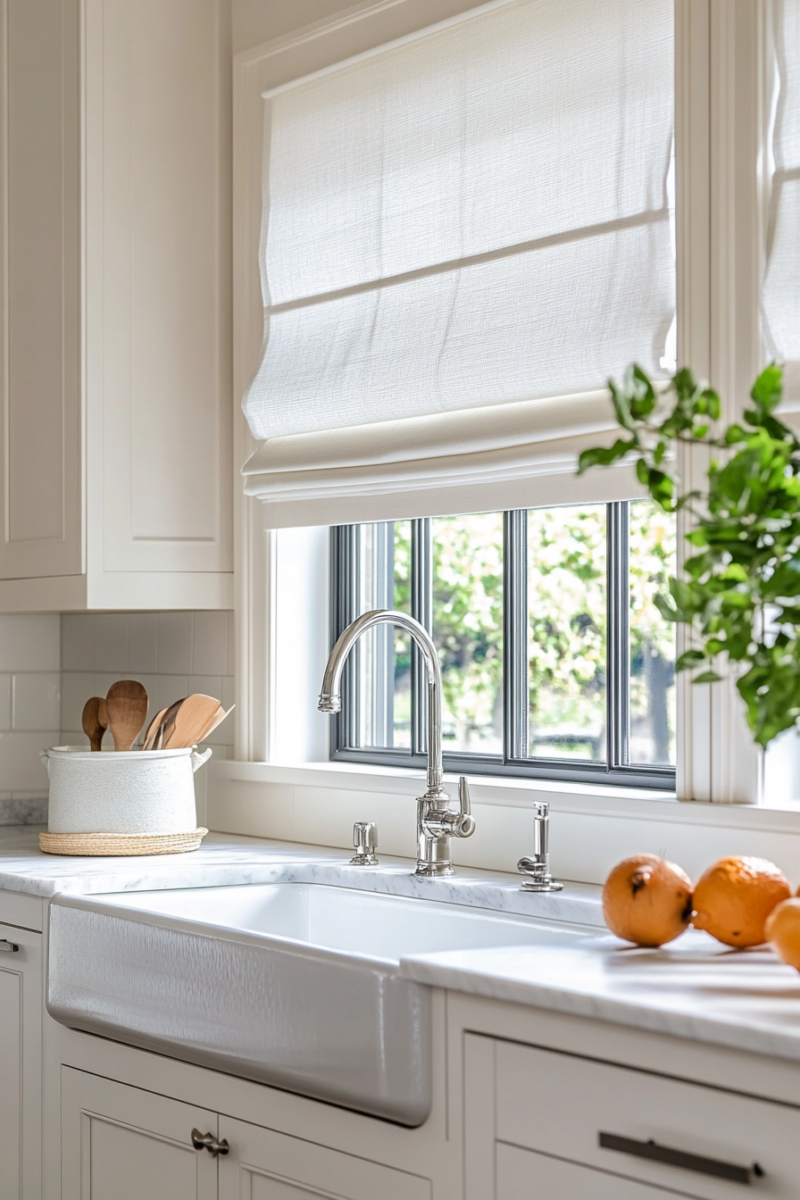Roman shades come in a variety of fabrics and patterns, so you can easily find a style that complements your farmhouse decor.