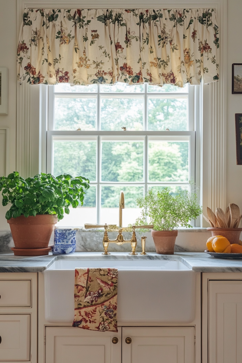 For a farmhouse look, choose valances made from natural fabrics like cotton or linen.