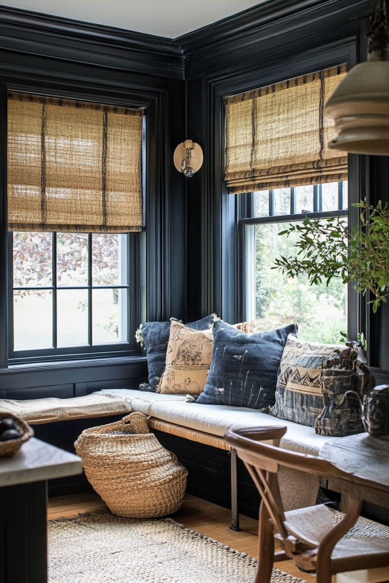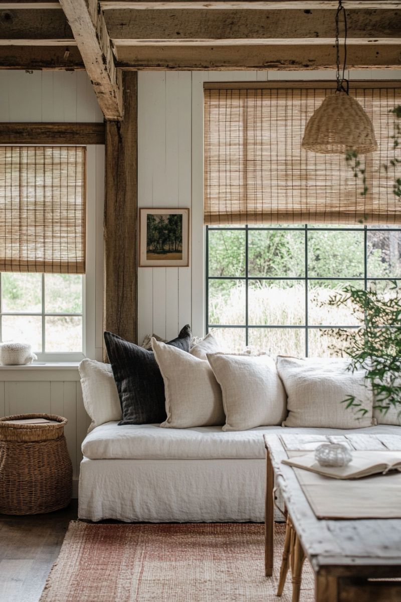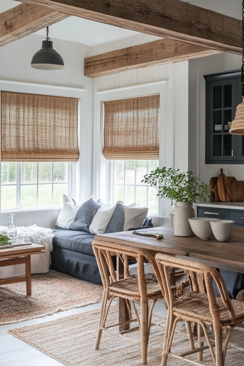 Woven bamboo shades are an excellent choice for adding natural texture to your farmhouse windows.